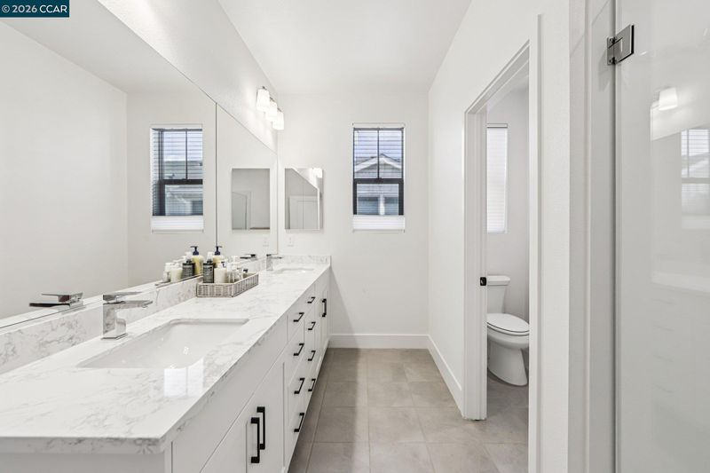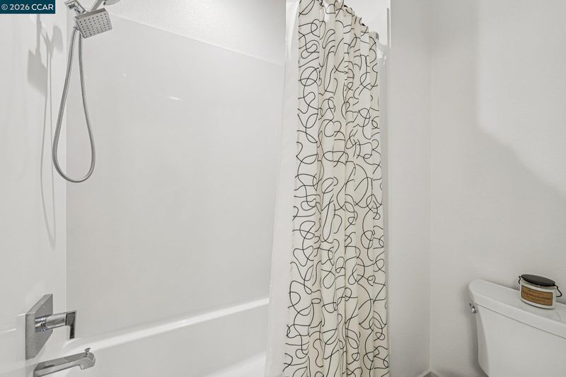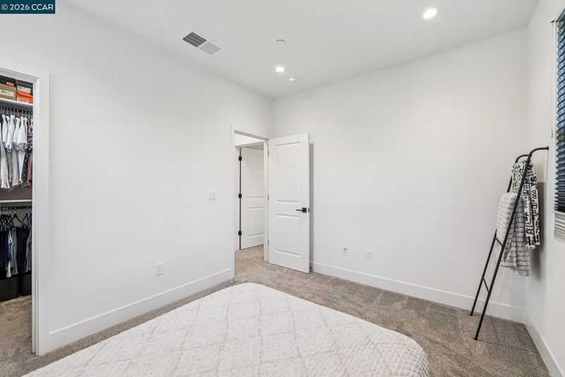 Practically new and beautifully upgraded, this light-filled townhouse-style condominium offers thoughtfully designed living across three levels. As a desirable end unit, it enjoys added privacy, a street-facing location with convenient guest parking, and sits directly next to the community dog park. The entry level features a private bedroom with ensuite bath and direct access to the attached two-car garage, ideal for guests, multigenerational living, or a home office. The main level showcases a stunning kitchen with a waterfall marble island, custom pantry shelving, abundant recessed lighting, and seamless flow into the living and dining areas. A charming office nook, stylish powder bath, and private deck complete the space. Upstairs offers a spacious primary suite, two additional bedrooms, a full bath with double vanity, and a convenient laundry room. Upgrades include owned solar, additional lighting, high-quality window coverings, custom closet shelving in 2 of the rooms, upgraded walk in closets—too many upgrades to mention. Located in the sought-after SummerHill community just one block from BART, with easy freeway access and close to Bay Club. A must-see