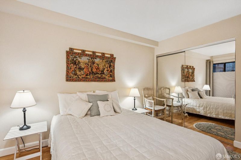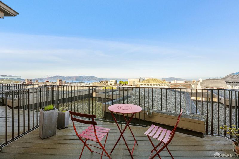 First time on the market! Beautiful north bay view including the full Golden Gate Bridge span, the Marin Headlands, and Mt. Tamalpais beyond. This would be a great starter home, an ideal pied-a-terre, or...? Fabulous location, equidistant to upper Fillmore and Union Street and their destination restaurants, shops and boutiques. The kitchen and bath have been updated, there are numerous closets and storage cabinets throughout, and the property is in immaculate condition. The large view deck is right off the living room. The property also features convenient garage parking, a gas burning fireplace, common elevator, common view roof deck, and laundry facilities in the building. This is a very special property, truly not to be missed!
