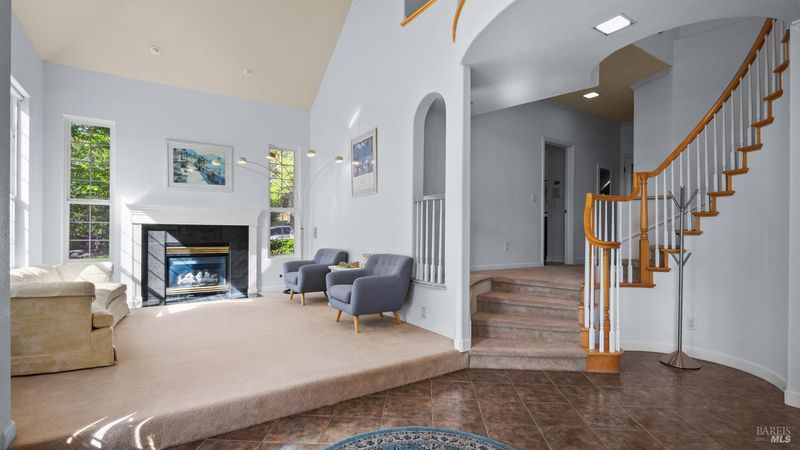 Welcome to this magnificent Bennett Valley home with private yard backing to designated open space on a cul-de-sac near Annadel State Park! Set on a generous corner lot, the property offers exceptional privacy and an expansive outdoor setting. Inside, the living room impresses with soaring cathedral ceilings, abundant natural light, and a cozy gas fireplace - an ideal space for gathering with family and friends. The open concept layout includes a convenient main-level bedroom and full bath, while the primary suite enjoys its own secluded upstairs wing. The kitchen features granite countertops and a Wolf range, creating a stylish and functional space for cooking and entertaining. A spacious three-car garage with epoxy flooring and ample storage adds even more convenience. Enjoy the serenity of your own private outdoor space with beautiful garden. This is a solid, thoughtfully built residence with a quiet outlook located in one of Bennett Valley's most established and desirable neighborhoods!
