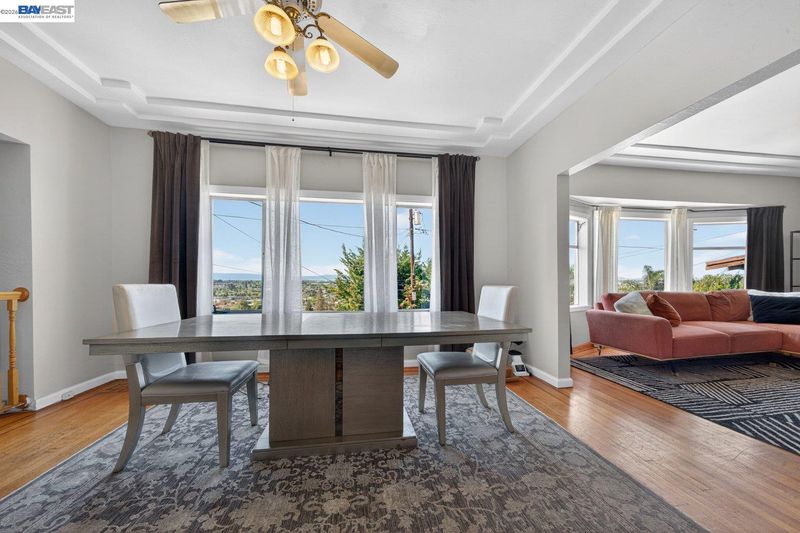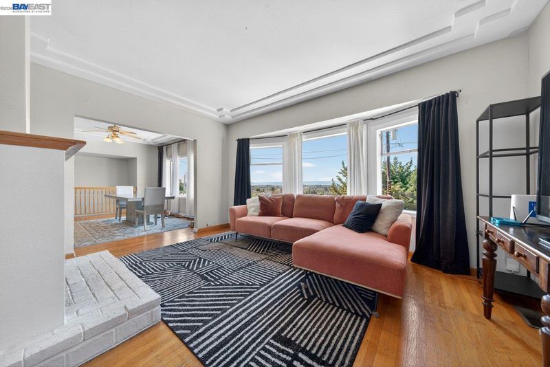 Flooded with natural light and bay views, this spacious 1700 square feet 2-bedroom, 2-bath home with bonus room and attached one car garage and attached 1-bedroom/1-bath ADU offers incredible flexibility for multi generational living or extra income potential. Light-filled living and dining rooms feature large picture windows, elegant ceiling details, and a cozy fireplace, flowing into an expansive kitchen with abundant cabinetry, generous counter space, gas range, and dishwasher—perfect for everyday cooking and entertaining. The main-level has 2 bedrooms and bathroom with shower over tub. Downstairs, a versatile bonus room, bath with shower and dedicated laundry area create ideal space for a home office, gym, or media room, with additional storage and project potential. Outdoor living shines with 7,500 lot size, a brick front terrace and private rear courtyard, offering low-maintenance areas for barbecues, gardening, or simply relaxing Attached ADU enjoys full kitchen, bedroom, and bathroom—an excellent setup for extended family, or rental opportunity. Enjoy sweeping panoramic views including the Golden Gate Bridge, San Francisco–Oakland Bay Bridge, and San Mateo–Hayward Bridge. The backyard provides a rare vantage point to take in Fourth of July fireworks displays across Oak.