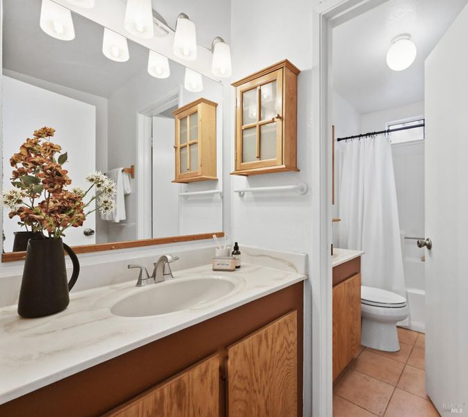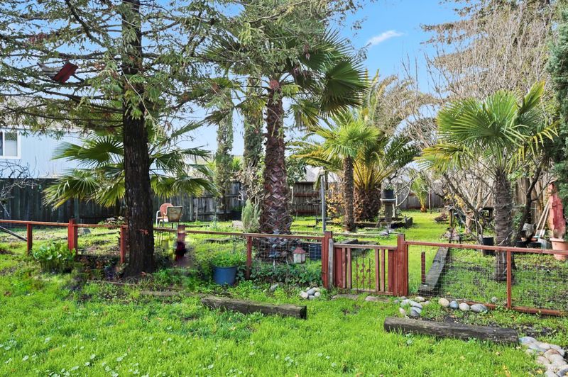 Welcome to this charming single-story home, tucked away in East Petaluma on a quiet cul-de-sac, offering privacy and a true sense of retreat. Situated on a spacious, park-like lot, the property features a stone patio with arbor, mature fruit trees, established gardens, recreational areas, and a serene outdoor setting, all perfect for relaxing or entertaining. Inside, the home offers 3 bedrooms and 1 bathroom, all on one convenient level. The cozy living room showcases vaulted ceilings, abundant natural light, and a wood-burning stove that adds warmth and character, creating the hub of the home, ideal for entertaining or quiet relaxation. The inviting atrium provides seamless indoor-outdoor living, allowing you to enjoy natural light and your private, park-like setting year-round. The kitchen features dedicated eating areas, perfect for preparing holiday meals, while outdoor entertaining shines with a covered stone patio, ideal for BBQs and chef-inspired masterpieces. Functionality and comfort continue with a two-car garage offering ample parking and storage. This special home blends comfort, privacy, and timeless charm in a highly desirable location and setting.