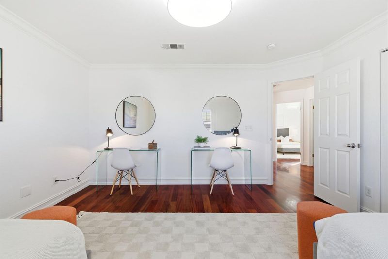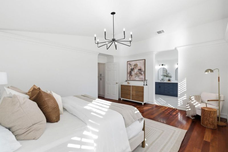 Luxury in the heart of Morgan Hill Open flowing floor plan & soaring ceilings create an expansive light filled first impression Brazilian cherry wood floors plantation shutters & LED lighting deliver timeless elegance Chefs kitchen designed for entertaining with solid wood cabinets granite counters oversized center island generous pantry & new appliances including 5 burner gas range Seamless outdoor flow connects to private dining rm keeping everyone in the experience Desirable 1st floor bd with adjacent full ba ideal for guests executive office or multigen living Spa inspired primary suite impresses w/ vaulted ceilings glass shower freestanding soaking tub dual vanities heated flrs & walk in closet Updated hall ba & lg laundry rm serve 3 well proportioned secondary bds Resort style outdoor living - pergola raised garden beds mature fruit trees Japanese maples & low maintenance paver hardscape Premium amenities include 5.9KW solar whole house RO water filtration/softener video doorbell NEST thermostats new interior paint energy efficient LED lighting custom shutters crown molding & outdoor gas fire pit Prime South SV location walk to vibrant downtown dining shopping farmers markets wine trail hiking biking EZ commutes & top rated schools Minutes to wineries Live the good life