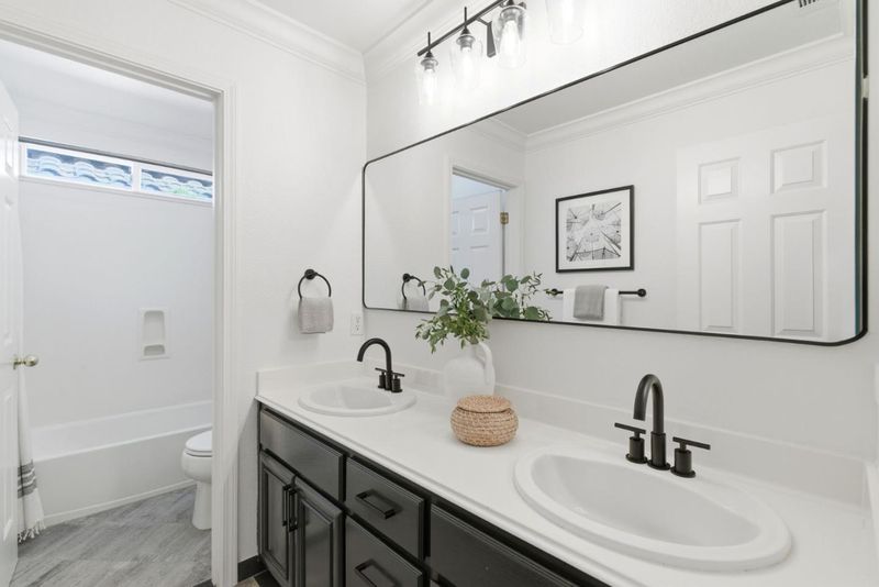- Double Sinks, Full on Ground Floor, Granite, Marble, Pass Through, Primary - Oversized Tub, Primary - Stall Shower(s), Tub in Primary Bedroom, Updated Bath