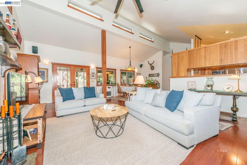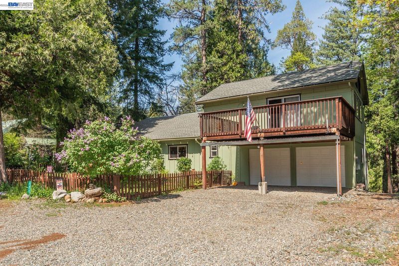 Beautifully restored in 2008, this home offering 2,174 sq ft with 2 spacious primary ensuite bedrooms and 2.5 baths. Blending historic character with modern updates, the home features Douglas Fir hardwood doors, trim, and window casings, tile entry, and engineered hardwood flooring in the main living areas. Kitchen includes granite countertops, Hickory cabinetry, and walk-in pantry. Dining room flows to living area both with French doors leading to covered back deck, plus a cozy sitting room with custom carpet and floor-to-ceiling blue pine shelving. Main-level primary suite offers walls of windows, French doors to a private deck, and spa-style bath with radiant heated tile floors, soaking tub, granite counters, and walk-in tile shower. Upstairs features a large second primary suite with balcony access, front deck, and loft. Additional amenities include half bath on main level, attached 2-car garage with workshop, lower workshop, expansive back decking with mountain and creek views, and whole-house generator (2022), all on .51 acres. Close to Trinity Lake and Trinity Alps Wilderness-ideal for year-round living or a mountain retreat.