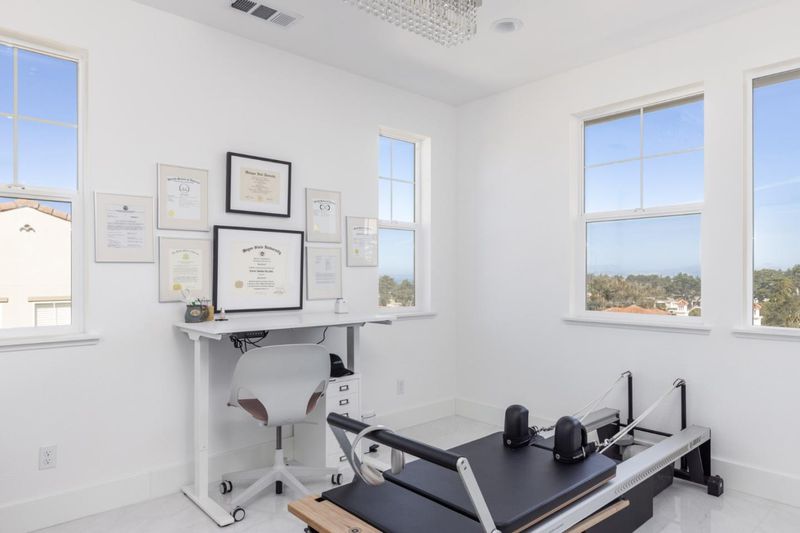Located in the gated community of The Enclave, this 5 bed, 4.5 bath, 3,724 sq ft home offers golf course views and detailed finishes. The main level features a guest suite with full bath, a 5th bedroom or office, and a great room with built in home theater speakers. The gourmet kitchen includes a Sub-Zero refrigerator, Wolf appliances, and opens to a fully fenced, landscaped backyard and porch with ceiling-mounted exterior speakers and fireplace. Upstairs, the primary suite features a private balcony with ocean views, a large en suite bath, and a walk-in closet. A bonus room is ideal for a gym or office. Smart features include Alexa-controlled lighting, Ring security with window and door sensors, and solar power. The property also has a two-car garage plus a separate one-car garage. Just minutes from the beach and adjacent to Bayonet and Black Horse Golf Courses, this home blends comfort and elevated coastal charm in one of Seaside's most desirable neighborhoods.