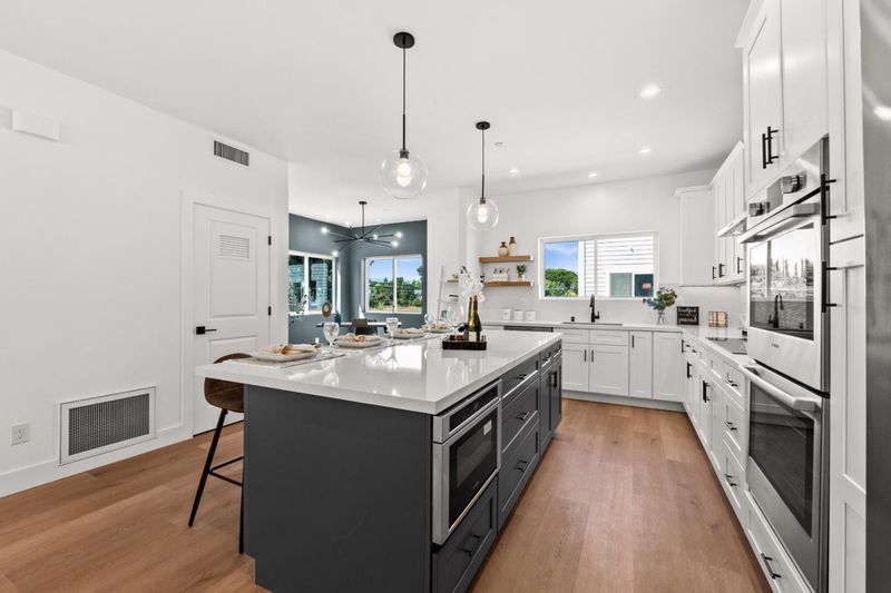 Step into luxury and convenience in this new, 4-bedroom home in Mountain View. Just completed in 2024, this multi-level residence offers 1,850 sf of living space tailored to the needs of a contemporary lifestyle. Enjoy a ground-level guest suite, the main level with open living space and a chef's kitchen, a private balcony for al fresco enjoyment, and the expansive, upstairs primary suite. This stunning open-concept floor plan boasts West Elm lighting & high-end finishes throughout. The epitome of luxury living, from beautiful Flooring, Pantry, Shaker cabinets, Double ovens, LaCava & Kohler bathroom sinks, Toto toilets, dual-zone HVAC, Washer & Dryer. Window covering is included, as well as a private front porch, private balcony, and amazing low-maintenance landscape managed by the HOA. Attached, 2-car garage with a pre-installed EV charger, plumbed for solar. This location puts everything the area has to offer within easy reach - downtown Mountain View and Los Altos are short drives away; major Tech campuses, including Google, Microsoft, ARM, Intuit, NVIDIA, and Meta. A charming park is just down the street. Featuring award-winning MV/Los Altos Schools (top-rated Los Altos High School).
