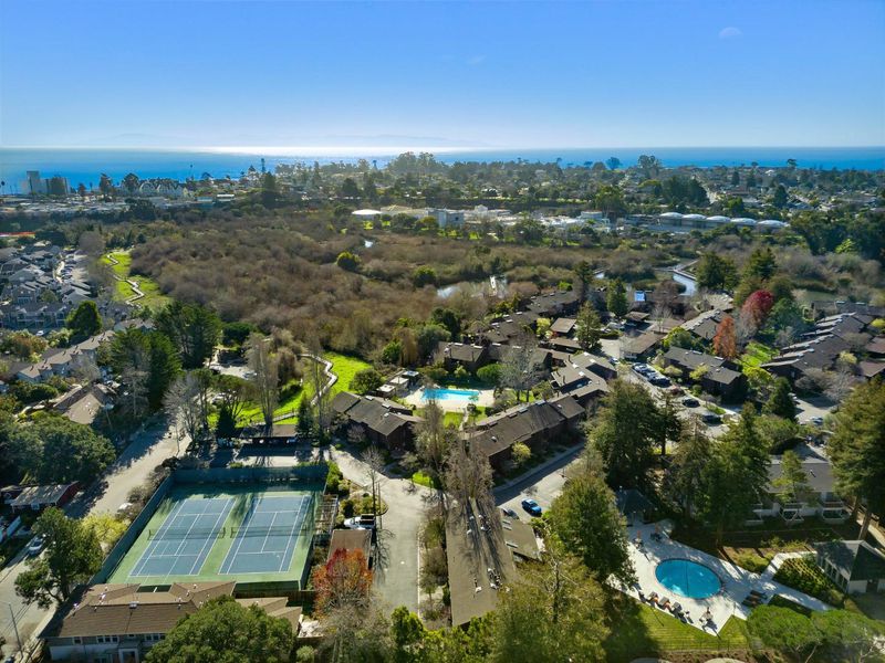 Tucked inside the peaceful and private Shelter Lagoon enclave, this beautifully remodeled townhome offers resort-style living in the heart of Santa Cruz with a rare feature you won't find elsewhere: a scenic trail through Neary Lagoon that leads you all the way to the beach without ever stepping onto a street. This 2-bedroom, 2-bath home has been thoughtfully upgraded with a highly desirable floor plan and custom finishes. The stunning kitchen remodel includes quartz countertops, new appliances, and premium features like pull-out shelving and soft-close drawers. Perfect for both everyday living and entertaining. Enjoy vaulted open-beam ceilings, and a private deck overlooking the lush grounds and sparkling pool. With no one above or below, you'll appreciate the privacy. Just a short walk through nature brings you to the Santa Cruz Wharf, Steamer Lane, West Cliff paths, and the Beach Boardwalk. You're also walking distance to downtown Santa Cruz, minutes to UCSC, and enjoy easy commuter access. The resort-like community amenities include a pool, tennis and pickleball courts, EV charging, and beautiful greenbelts and lagoon trails. A rare gem that blends convenience, coastal living, and natural beauty, move-in ready and truly special.