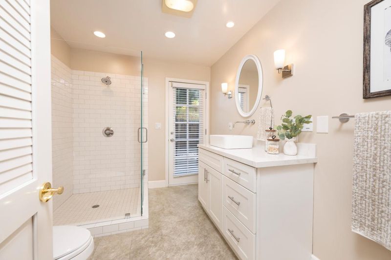 - Full on Ground Floor, Oversized Tub, Primary - Oversized Tub, Shower and Tub, Skylight, Stall Shower, Tile, Tub in Primary Bedroom
