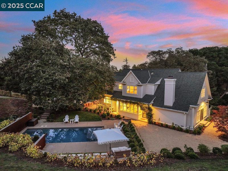 Rustic charm meets refined living in this one-of-a-kind gated estate nestled in Lafayette’s coveted Reliez Valley. Set on 2.45 private acres near Briones Regional Park, this property includes a custom farmhouse, detached guest cottage & versatile auxiliary building, surrounded by serene natural beauty. A lavender-lined drive leads to the 4-bed, 2.5-bath main home featuring wide plank pine floors, cathedral ceilings & walls of windows. Enjoy a formal living room with fireplace, dining room overlooking the pool & a show-stopping moaner farmhouse kitchen with custom cabinetry, WOLF range & large island. The detached cottage offers a full kitchen, bath, & open living area—perfect for guests or a private office. A separate building with full bath adds endless possibilities for a studio, gym, or guest quarters. Outdoor living shines with a sparkling pool, custom outdoor kitchen with gaucho grill & kegerator, fire pit, basketball half court, Treehouse with slide & lush gardens beneath majestic oak trees. Bask in nature & harvest fresh honey, berries & flowers. Near Briones trails & minutes from downtown Lafayette, top-rated schools & shops-this rare estate is where rustic elegance & modern comfort meet in perfect harmony. Ease of access to Hwy 24/680 & Walnut Creek.