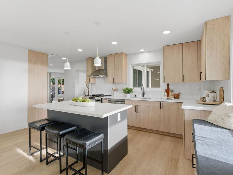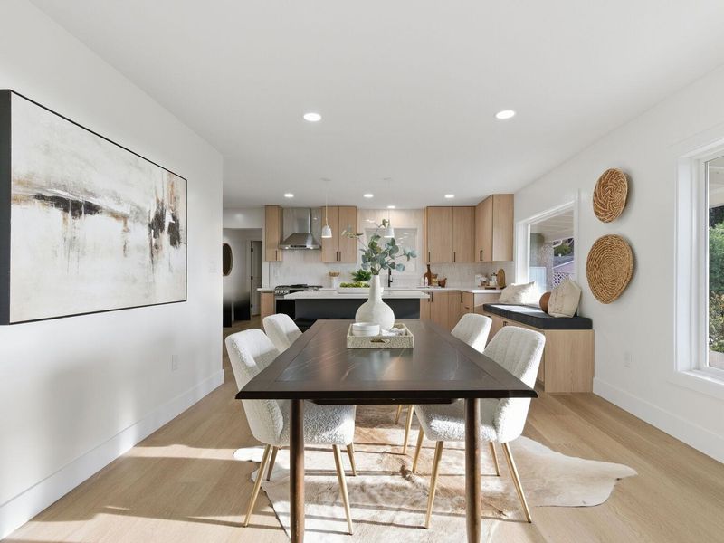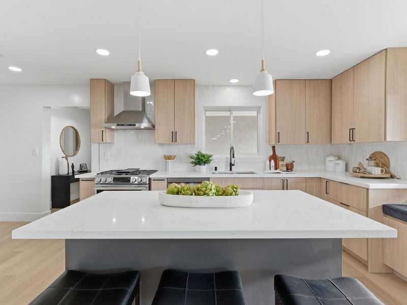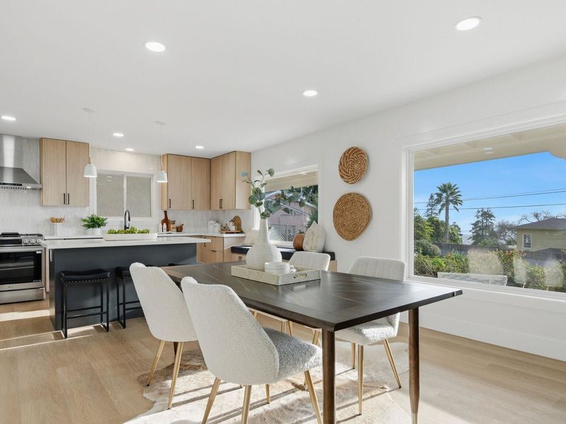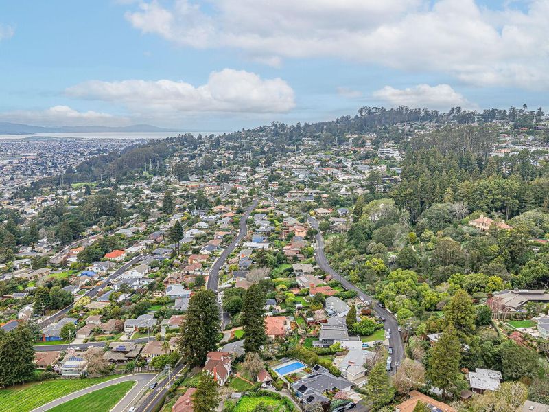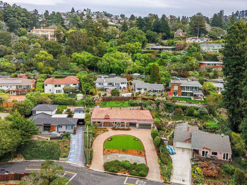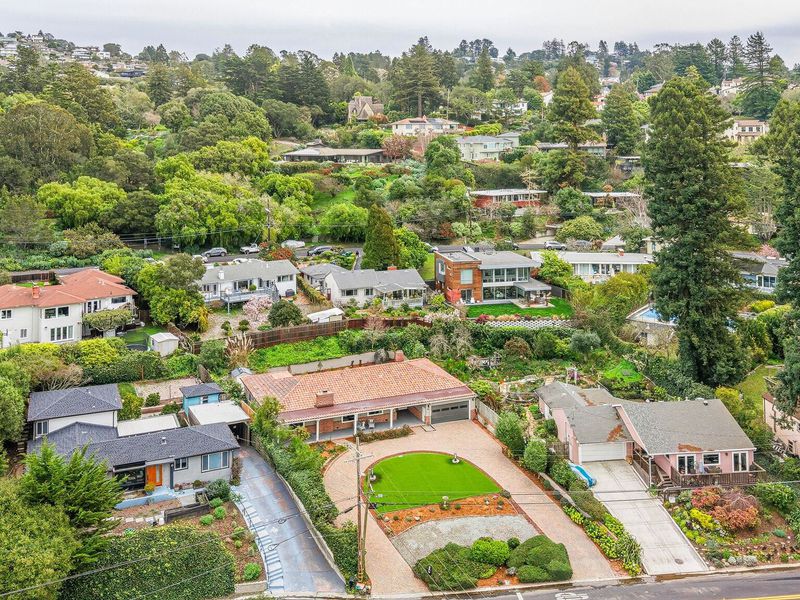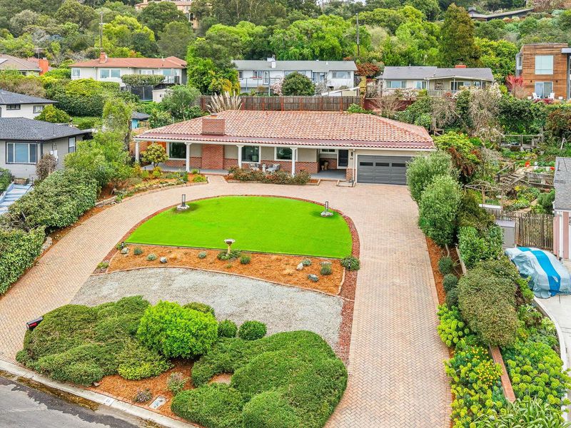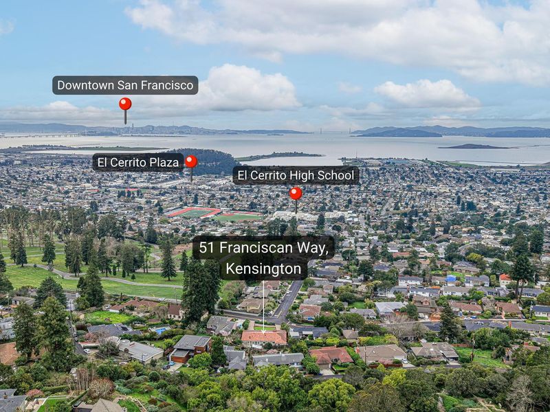 A rare Kensington hillside retreat with Bay views and Golden Gate Bridge vistas, this exquisitely remodeled mid-century traditional ranch blends timeless architecture with modern luxury — all on one spacious level. Exceptional curb appeal welcomes you with a sweeping horseshoe driveway, lush landscaping, and a peaceful setting on a quiet street. Inside, natural light fills the open living and dining areas, where large picture windows frame greenery and shimmering water views. The tastefully remodeled kitchen features sleek cabinetry, quality appliances, and seamless flow for everyday living and effortless entertaining. Comfortable bedrooms offer flexibility for guests, a home office, or growing needs, while updated baths showcase clean, contemporary finishes. Step outside to a private backyard oasis ideal for relaxing, dining, or gathering under the open sky. Located minutes from Arlington Avenue shops, local parks, and easy access to Berkeley, this Kensington home offers the perfect balance of serene hillside living and everyday convenience. An exceptional opportunity to own a move-in ready home with views, privacy, and true East Bay charm.