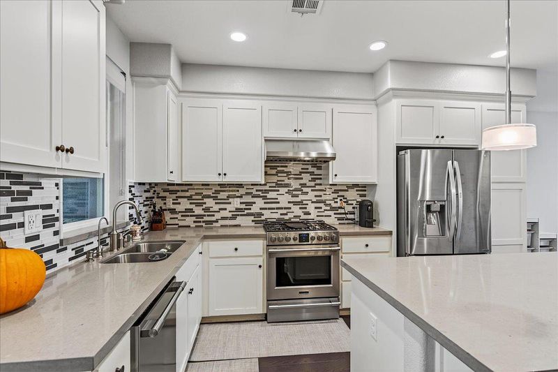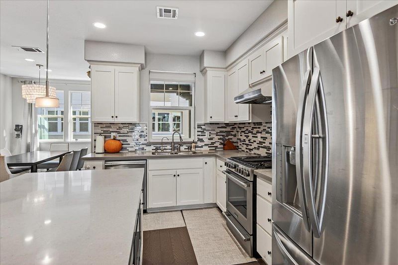 Rarely available, largest plan in the Sandalwood community. This beautiful townhome is designed with comfort and elegance. Heart of the home is the expansive Great Room, featuring a spacious kitchen centrally positioned between a formal dining area and a generous living space. Dining area seamlessly connects to a covered balcony, ideal for enjoying outdoor meals or relaxing. Modern kitchen is a true social hub, equipped with a large island that provides versatility for casual dining and effortless entertaining. Premium finishes include granite countertops, mosaic tile backsplash, sleek stainless-steel appliances and ample cabinetry for all your storage needs. Upstairs, the primary suite offers a luxurious sanctuary with a spacious shower, dual-sink vanity, private water closet, and an expansive walk-in closet complete with organizers to maximize space and functionality. The ground-level suite provides flexibility and convenience, making it perfect for a home office or guest accommodation. Premium features include tile floors in all bathrooms, zoned HVAC for personalized climate control, upper-level laundry, custom window treatments. Community amenities include playground and clubhouse. Unbeatable location just moments from Downtown Sunnyvale, Caltrain, and major tech hubs.