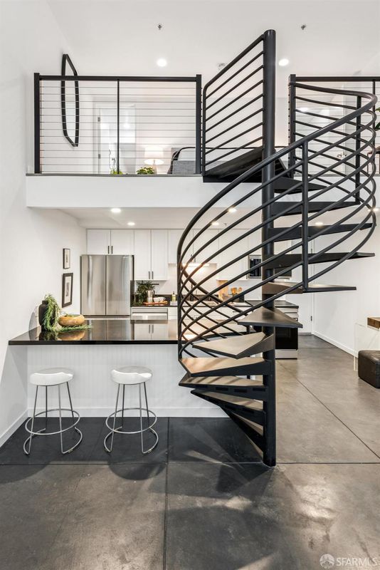 This modern two-level loft condominium designed by renowned architect Stanley Saitowitz in the Sunny Dogpatch has been updated beautifully. The loft bedroom has additional square footage that was added by closing in the gap, which makes for a much more spacious bedroom! An island has been added in the kitchen to account for more counter and storage space, and adds to the thoughtful design of the condo. The high ceilings and concrete floors with radiant heat, lovely laundry area with new washer and dryer, deeded spacious patio off the great room and convenient one car parking with an EV Charger and storage completes this home. Steps to the MUNI light rail, the waterfront trail, Chase Center, UCSF Hospital and Crane Cove Park. Close to Oracle Park, Caltrain and easy access to Highways 280, 80 and 101. Enjoy the many shops and restaurants the Dogpatch, Mission Bay and Potrero Hill have to offer.