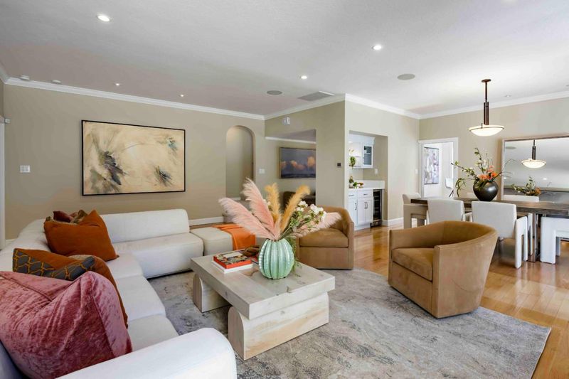 Bright and beautifully updated, this stylish home in the Sharon Oaks community blends comfort, style, and convenience. Spanning more than 2,200 sf across two levels, the home features hardwood floors, crown molding, high ceilings, and an abundance of natural light. The living room centers around a fireplace, while a dining room with a wine refrigerator flows into a kitchen with quartz countertops and a breakfast nook, alongside a sun-filled den. Three bedroom suites provide exceptional comfort and flexibility. Outdoors, a pergola-covered patio creates a wonderful setting for relaxation or entertaining, complemented by community amenities including a pool and clubhouse. Additional highlights include air conditioning and a 2-car garage with an epoxy floor. All of this is just moments from the Sharon Heights Shopping Center, with easy access to downtown Menlo Park and Palo Alto, Stanford University, Interstate 280, and top-ranked Las Lomitas schools (buyer to verify eligibility).