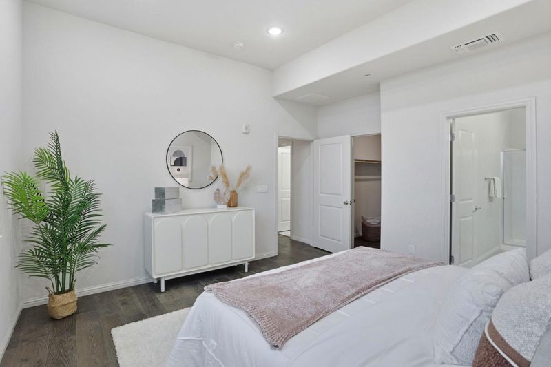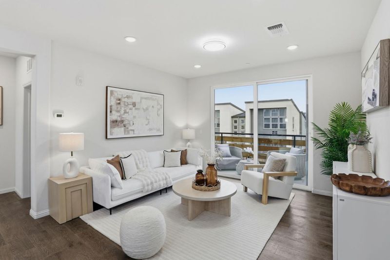 Immaculate and impeccably maintained, this 4-bedroom corner unit townhome boasts a premium location and stunning open views. It features abundant large picture windows offering lush greenbelt views from most rooms and opulent soothing natural light. The open floor plan is decorated in contemporary neutral colors and quality engineered wood floors throughout. The spacious and functional kitchen is equipped with ample dark Shaker cabinets, SS appliances, expansive marble counters, and a large central island with a convenient breakfast bar. Step out onto the intimate deck from the living room, seamlessly blending indoor and outdoor living. The generous master suite includes a lavish ensuite bath with a large shower, dual-sink vanity, and a spacious walk-in closet while the elevated ceiling creates airy atmosphere. The secluded main floor guest/in-law bedroom is adjacent to a full bath, providing privacy and convenience. Enjoy outdoor activities in the nearby Newbury Park. Community amenities include a BBQ/picnic area and a dog-friendly park. Convenient location: short commute to downtown San Jose, Japantown, and shopping centers like Costco, Ranch 99, and H-Mart, easy access to BART, VTA, freeways 101/680, and within walking distance to Google and Meta shuttle stops.