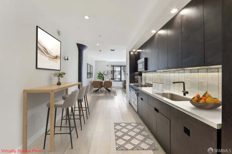 Rooftop pool, air conditioning, deeded parking, and a pet-friendly building - this is chic urban living at its finest. This luxurious one-bedroom, one-bath residence is set within a newer boutique building in the heart of the vibrant Mission District and Valencia Street corridor, surrounded by some of San Francisco’s best dining, coffee, indie boutiques, art spaces, and nightlife. With BART and MUNI just steps away and convenient freeway access nearby, commuting is effortless. Residence #304 offers a bright, open-concept layout with expansive windows, abundant natural light, and rich flooring throughout. The sleek chef’s kitchen features stone countertops, a Bertazzoni gas range, espresso-stained cabinetry, and a Liebherr refrigerator. The spa-inspired bathroom provides a serene retreat with a glass-enclosed rain shower, premium finishes, and in-unit stacked laundry. 1875 Mission welcomes residents with a striking Moroccan tile entry lounge and herringbone reclaimed wood lobby. The show-stopping rooftop delivers a heated outdoor pool, lounge areas, dog run, and sweeping 360-degree city views - all with low monthly HOA dues. Compact deeded parking - buyer to test car in spot.