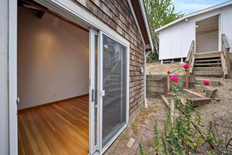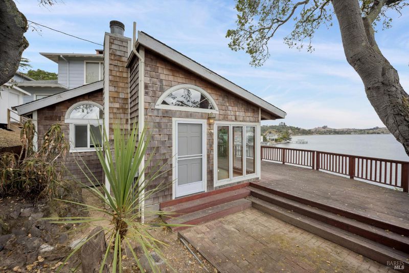Bayfront Home with Stunning San Rafael Bay Views! Don't miss this rare opportunity to own your own bayfront retreat overlooking the tranquil waters of San Rafael Bay. This charming 1-bedroom, 1-bathroom home offers sweeping views and direct bayfront access via a private pathway, perfect for those who love the water and the outdoors. Nestled at the end of a cul-de-sac, the home features an inviting living room with a wood-burning fireplace, hardwood floors, and expansive windows that frame the spectacular bay views. Step out from the living area onto a spacious deck ideal for entertaining or relaxing while watching the sunset. The remodeled kitchen is equipped with a gas cooktop, electric oven, dishwasher, microwave, and refrigerator, while the updated bathroom offers double sinks and a walk-in shower. A separate detached structure, already plumbed for laundry and generously sized, provides excellent flexibility, perfect for a home office or art studio. Two-car side-by-side parking on a private pad completes this unique bayfront package. Enjoy the ultimate Marin lifestyle peaceful, private, and connected to nature, yet just minutes from downtown San Rafael amenities and freeway access.