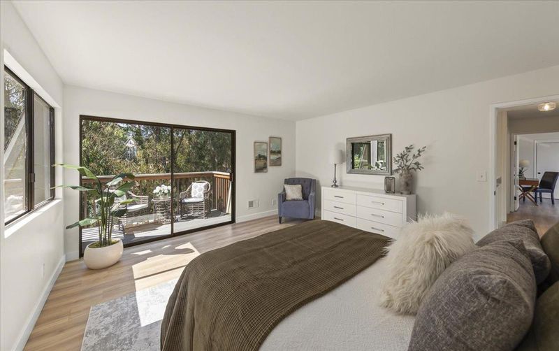 Tucked at the end of a quiet cul-de-sac, this move-in ready Santa Cruz home blends comfort, thoughtful updates, and an enviable location near parks, trails, and beaches. The open floor plan features brand-new LVT flooring, fresh interior paint, and soaring ceilings. A wood-burning fireplace adds warmth and charm to the living room, while the kitchen offers granite counters and upgraded cabinets. All three bathrooms showcase sleek quartz surfaces, enhancing the homes modern style. Recent upgrades including a new roof, sewer lateral, one-year-old furnace, front porch, and cabinetry provide peace of mind. The spacious primary suite is joined by two additional bedrooms, each with private balconies overlooking a serene greenbelt. In addition to the main house is a versatile bonus room with an additional 200 +/- sq ft which can serve as an office, den, or guest quarters. Expansive decks with two large gathering areas create the perfect setting for BBQs, entertaining, or relaxing outdoors. The low-maintenance yard makes upkeep simple. Steps from University Terrace Park and Dog Park, with easy access to Mission Street shops, Cafe Brasil, New Leaf Market, and the farmers market, this home is also minutes from UCSC, West Cliff Drive, Natural Bridges, and world-class beaches.