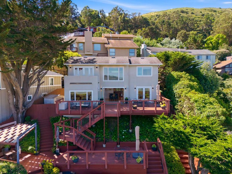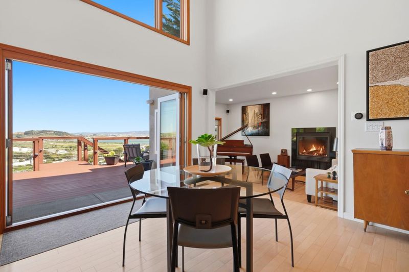 Welcome to 820 Humboldt Road, a light-filled contemporary home in the hills of Brisbane, featuring panoramic Bay views with a direct line of sight to the San Francisco skyline and SF Bay. Expansive windows and wide sliding doors create a seamless indoor-outdoor flow, opening to multiple decks ideal for entertaining, dining, and relaxing against a stunning waterfront backdrop. The open-concept living and dining areas are filled with natural light and centered around a gas fireplace, while the kitchen offers granite countertops and JennAir appliances, perfectly positioned for both everyday living and hosting. The primary suite features its own private view deck, creating a peaceful retreat with sweeping views of the Bay and the city. Additional features include updated bathrooms with custom tile, in-unit laundry, dual-zone heating, and generous storage. Ideally located just minutes from San Francisco, this home offers a rare combination of privacy, views, and convenience. Brisbane has great weather and has a beautiful outdoor pool, tennis courts, and a free shuttle to BART/Caltrain. Brisbane hosts Concerts in the Park, a farmers' market on Thursdays, and many other events and amenities that offer a small-town feel yet are so close to the city.