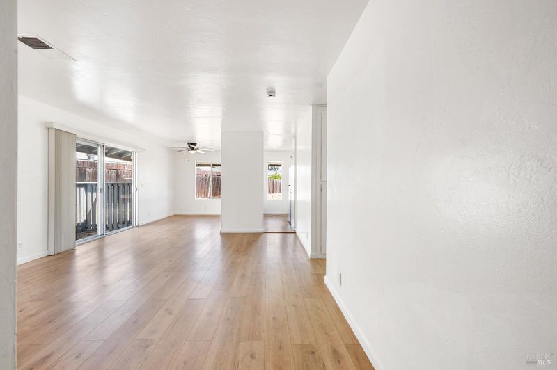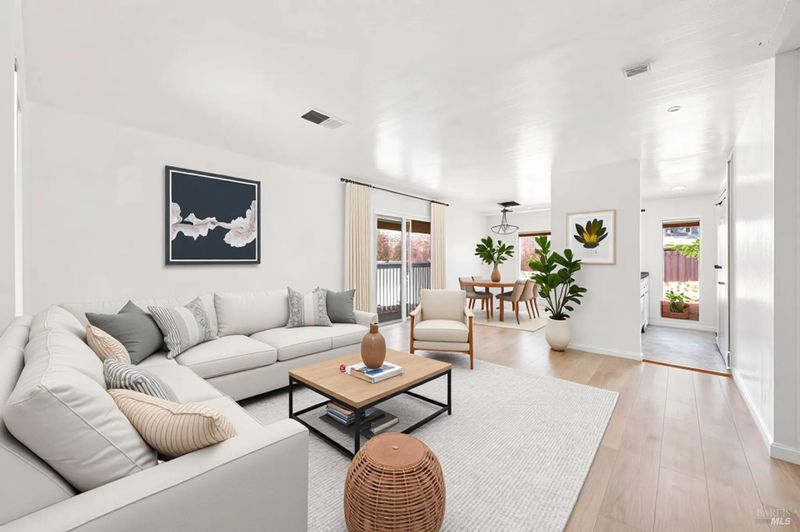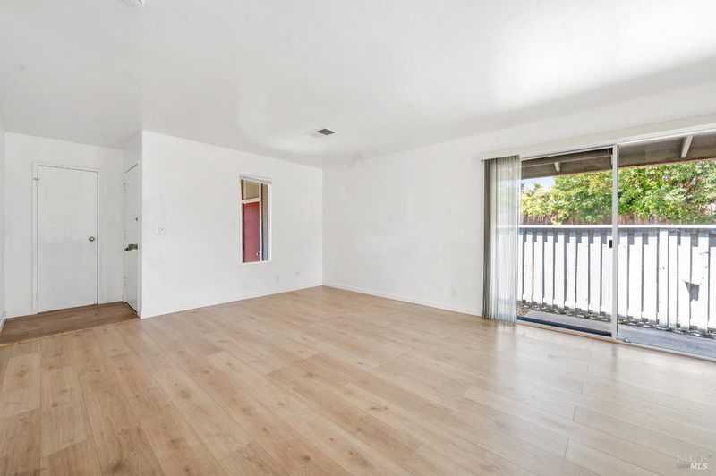 Excellent equity position. Updated 3BD/2BA condo in a private end-unit location with no side or rear neighbors! Brand new flooring throughout and a freshly painted interior that feels bright and welcoming. The kitchen features a stylish butcher block countertop, modern pendant lighting, and ample cabinet space. Both bathrooms have been updated, with the master bath showcasing new plumbing. The spacious primary bedroom opens to its own private fenced patio perfect for morning coffee or evening relaxation. Enjoy an open-concept living and dining area that flows onto a second large patio, ideal for entertaining or outdoor dining. Covered carport conveniently located just outside the front door. No garage available. Stackable Washer/Dryer hook-ups are located in an enclosed patio area near front door.