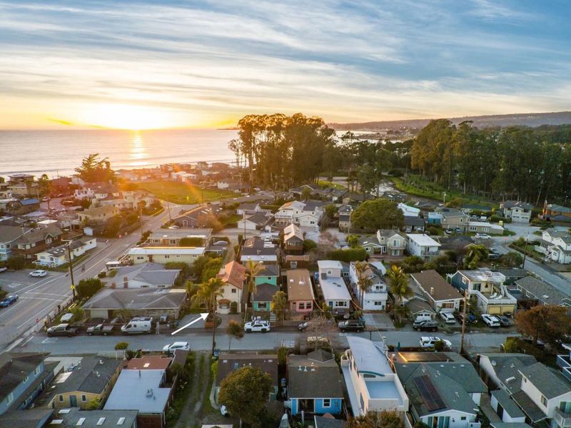 Situated in one of Santa Cruz most sought after neighborhoods, this move in ready home offers ocean views and effortless coastal living. Wake up to the sound of waves, with iconic surf breaks, beaches and scenic coastal paths just minutes away- an unmatched Pleasure Point lifestyle. Custom built in 2004, the home features a reverse floor plan designed to capture ocean views down Rockview. The upstairs living area is bright and airy with vaulted ceilings, expansive windows & abundant natural light. The modern kitchen features quartz countertops, new appliances & an ocean view. Unique finishes including a blue tile entry, spiral staircase and free standing gas fireplace add charm, while radiant heated flooring throughout is a rare luxury. Downstairs, the spacious primary suite opens to a private patio and a cozy second room works well as an office or for a daybed. The deck overlooking the backyard offers a peaceful place to unwind or watch your pet play in the fenced yard. The low maintenance outdoor space includes an outdoor shower, finished shed and a second parking space accessed via the rear alley. This home is ideal as a second home or effortless coastal retreat just moments from the ocean - simply move in and enjoy.