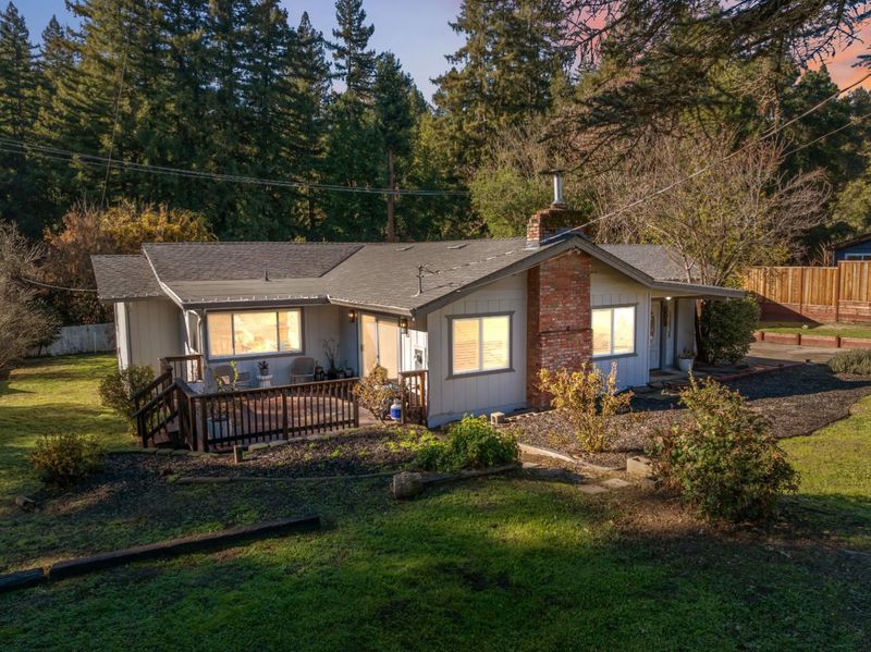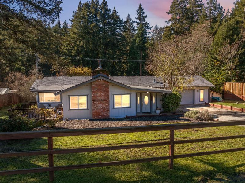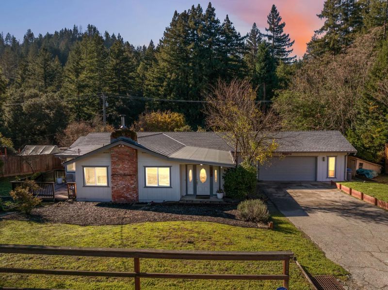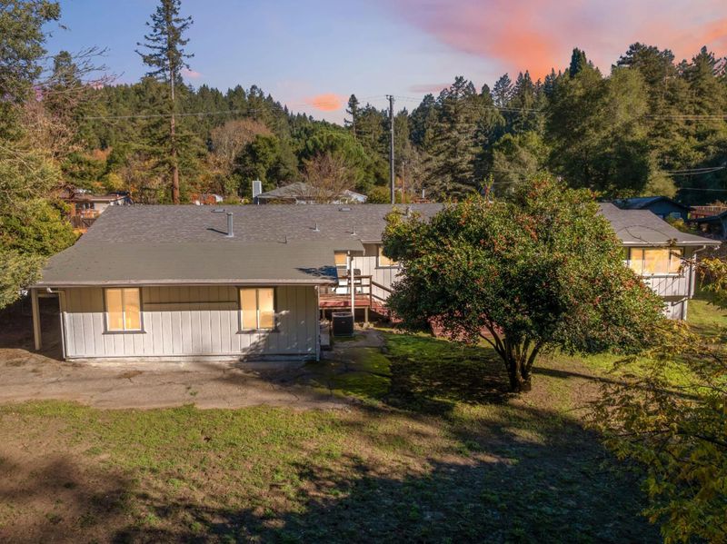 Located on a spacious, sunny lot, this turnkey 5 bedroom, 3 bath home showcases timeless mid-century modern character. The living room is beautiful with a striking newly installed marble hearth fireplace, creating a warm and inviting focal point. Entertain with ease in the formal dining room and wet bar, perfect for hosting holiday gatherings or enjoying desserts made with fruit harvested from the homes mature trees. Oversized windows throughout the home provide the interiors with natural light and create a connection to the outdoors. Recent upgrades include whole house water filtration with water softening and reverse osmosis, 30 year roof (approx 3 years old), and water heater. Outside, the expansive yard offers mature fruit producing trees, ample space for gardening, lawn games like badminton, or simply relaxing on a peaceful afternoon accompanied by birdsong. Excellent separation of space gives an opportunity to use it as a rental unit paving the way to financial independence. Ideally situated for commuters, the property provides convenient access to Silicon Valley via scenic Highway 9, while being just minutes from downtown Boulder Creek and its health food stores, restaurants, and local amenities.