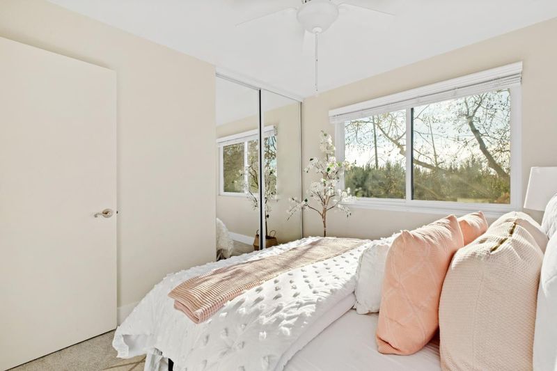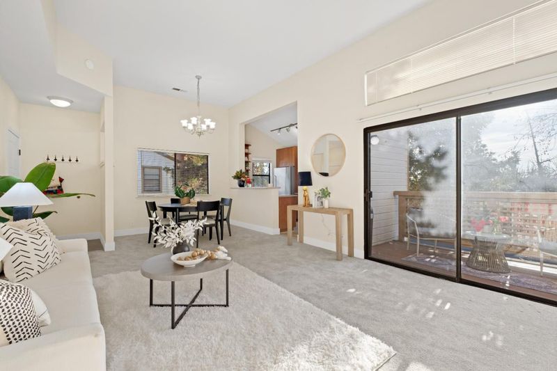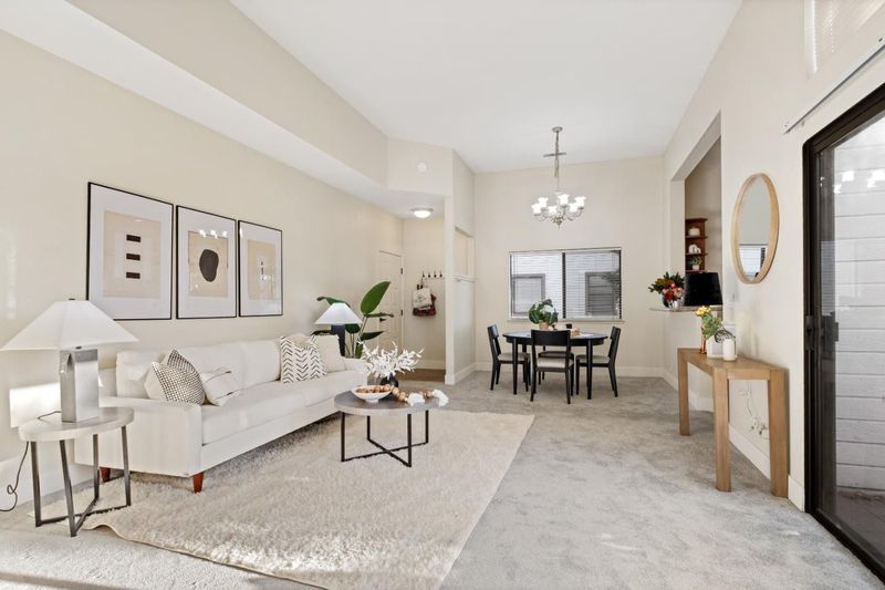 *Welcome to this newly updated corner unit, where modern comfort seamlessly blends with timeless style. Featuring high ceilings, expansive windows and glass doors, this bright and airy home offers a warm, inviting ambiance throughout. The spacious open-concept living and dining area flows seamlessly into a sleek kitchen, complete with stainless steel appliances, ample cabinetry, and a convenient breakfast bar, perfect for everyday living and entertaining. *Enjoy relaxing moments on the charming balcony, which overlooks a lush greenbelt and includes a bonus storage room. Enjoy the added convenience of newly installed flooring, central heating, in-unit laundry, and a detached garage #228. The generously sized master bedroom features a custom-shelved closet and an elegant ensuite bath with dual sinks. *Ideally located just a short walk from Townsend Park, this gem is surrounded by popular spots like Safeway, Sprouts, H-Mart, Ranch 99, and Costco. Enjoy seamless access to major freeways (101, 680, 880, 237), BART , and leading tech giants such as Nvidia, Google, Apple, and Supermicro. An extraordinary blend of comfort, style, and convenience.