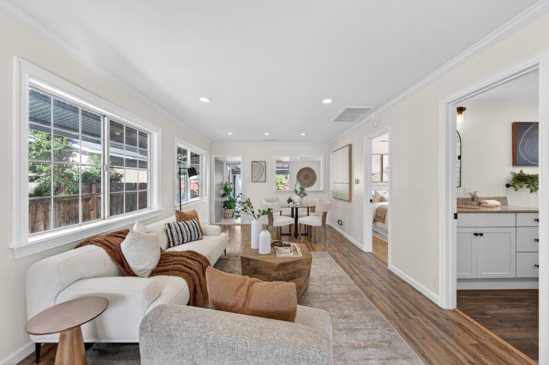 This charming starter home is just moments away from the heart of Japantown in San Jose. Recently revitalized with a freshly painted interior and exterior, the home feels bright and welcoming with designer touches and recessed lighting throughout. The fully remodeled bathroom features an oversized shower and luxury finishes that bring a modern touch while maintaining the homes warmth and character. The real magic lies outside within the spacious lot that offers wonderful outdoor potential. It boasts mature fruit trees, room for raised garden beds, two storage sheds, and a covered patio perfect for outdoor dining, relaxing, or entertaining. The yard also provides flexibility for future possibilities such as expanded outdoor living or potential ADU space (buyer to verify). A long covered driveway provides rare flexibility and can easily accommodate a boat, RV, or multiple vehicles. This home is conveniently located less than a mile from Japantowns vibrant shops, restaurants, and cultural destinations, with easy access to Light Rail, Diridon Station, and Highways 87, 101, 280, and 680. Walk to nearby neighborhood favorites like the 7th Street Sunday Farmers Market and Roy's Coffee while still enjoying quick access to downtown San Jose and major commute routes.