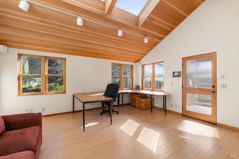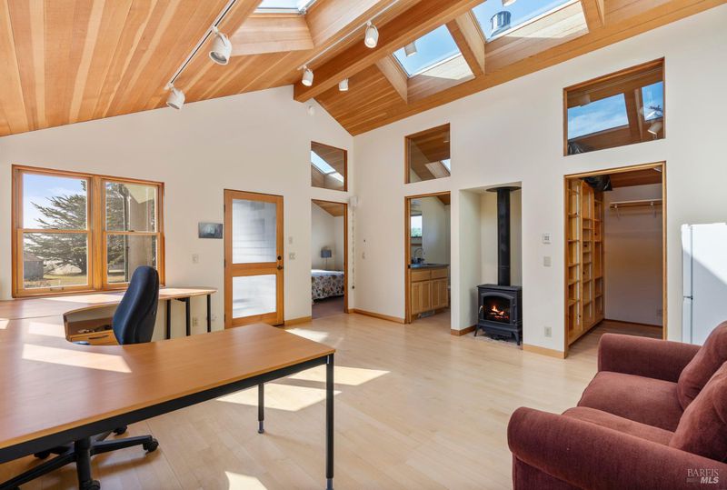 At the end of a private cut de sac and close to town and to trails is a beautiful Meadow West home with guest unit. This Brodie Design was once his personal residence. The main home is expansive with two bedrooms each with their own bath, a great room with fireplace, an office and family room. The Master Bedroom with fireplace opens to an ocean view deck with spa. Oversized two car garage. Plenty of space to tinker there. The one bedroom Guest Unit with wood stove is sweet and offers options for use...additional sleeping for your guests, another office or studio...you name it...but these spaces are hard to come by. This is truly a unique offering. Private yet close to the trails. Walk along the bluff which is just steps away. Meander to the Lodge. Enjoy all the amenities that the Sea Ranch has to offer: pools,tennis,recreation center, dog park, private airport,golf, bluff and forest trails, abundant wild life. The rugged coastline and dramatic timberland of the sea ranch provide a rare quality of life. This is an opportunity not to be missed.