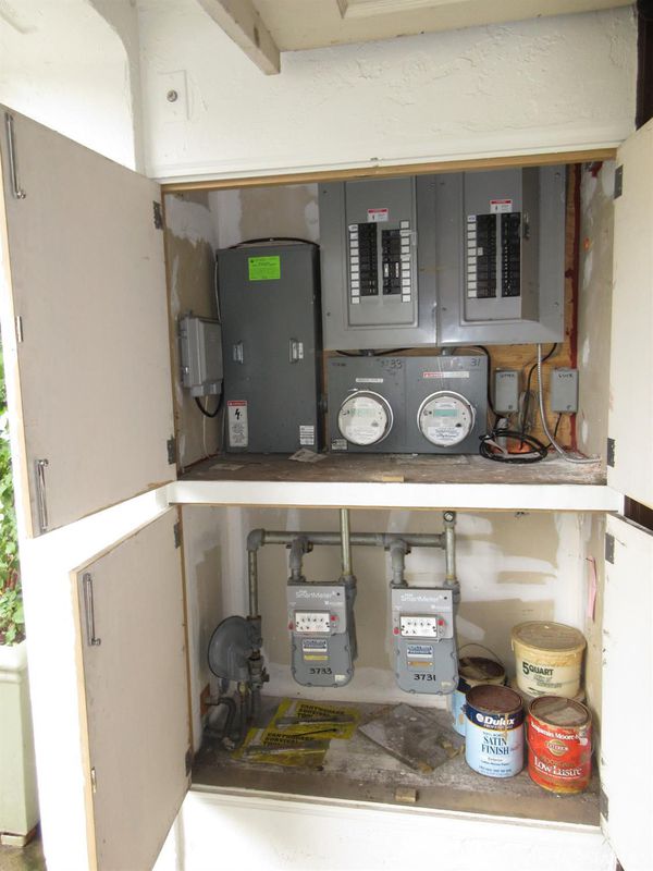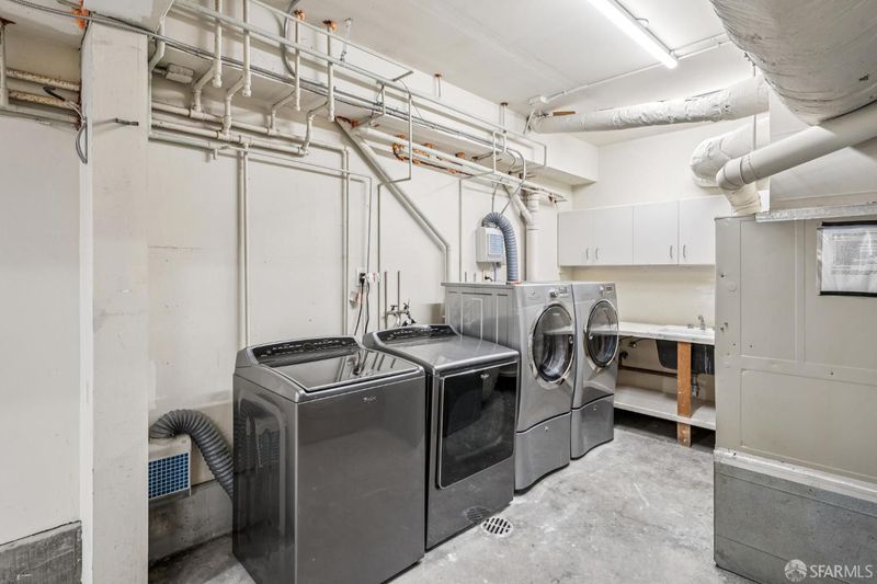 Classic Marina Flat built in 1934. A $1,800,000 renovation completed in 1992 by Mayta & Jensen after the Loma Prieta earthquake. The concrete slab & foundation were replaced. Seismic upgrades include: Double mat steel re-enforced 12 inch thick concrete slab, six moment frames running from the front to the back of the building, perimeter steel I Beams between garage and first floor flat linking the moment frames, hold downs and 10 sheer walls on both the second and third floors. The major systems including the electric, plumbing and heat were updated. New kitchens, baths, lighting, a roof deck and a lower level was added to the first floor flat. In preparation for the sale of the home, the interior was painted and the hardwood floors were refinished. An entry foyer opens to the public rooms. The living room has parquet hardwood floors, a wood burning fireplace with built in cabinets, recessed lighting, sconces and tall east facing windows which open to a balcony have a remote controlled shade. The formal dining room has a designer chandelier, recessed & spot lighting.There are French doors in both the dining room & kitchen that open to a 125 square foot tiled patio with a trellis. The sunny kitchen has a wall of south facing windows and a built in seating area. There is a breakfast nook, new quartz counters, new appliances (refrigerator, free standing gas stove, hood, dishwasher, and wine refrigerator). Two bedrooms with hardwood floors are located at the rear of the flat & have views to the west overlooking a city block of neighboring gardens. The primary bedroom has a sun room with Trex deck, two closets, a custom built wardrobe wall and ensuite bath with new microcement finishes to the floors and to the shower & bath tub surround; a new counter, wall sconces, sink and cabinet are additional features. A hallway leads from the second bedroom to a guest bathroom with tile floors and shower surround. Additional storage cabinets are located in the hall. Off the hall are stairs down to the garden level which has a bedroom with office, full bath and multiple closets. French doors open to a newly landscaped private garden and deck. There is access to the garage level from both an interior stairway off the kitchen and from the garden level.See Condo Plan for Exclusive use Yard (Y), garage (P-1), two washers and dryers (WD-1, WD-2), (L) laundry sink with storage cabinets,(D-1) Kitchen patio and (D-2) Primary bedroom deck