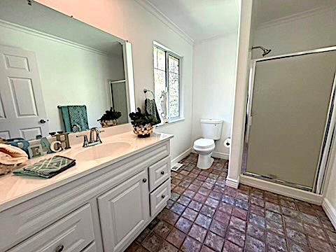- Full on Ground Floor, Primary - Stall Shower(s), Shower over Tub - 1, Solid Surface, Stall Shower, Tile, Updated Bath