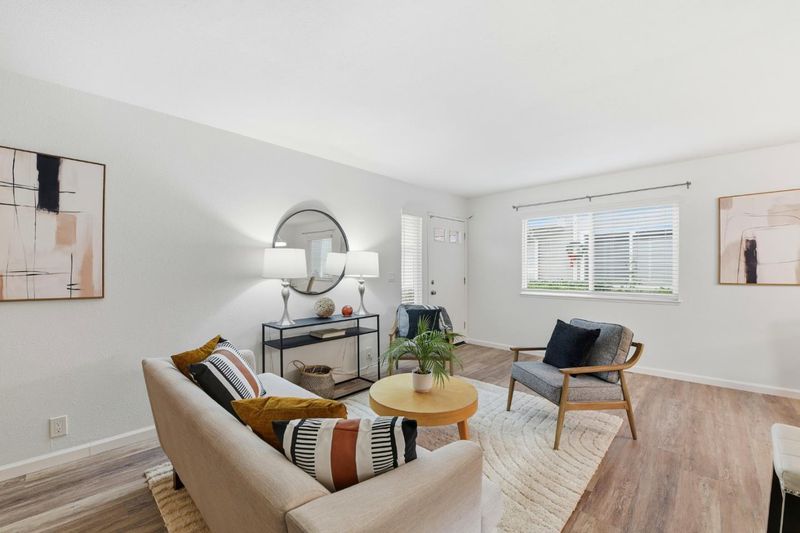 Welcome home to this warm and inviting San Jose condo that truly lives like a single-family home, with convenient ground-floor entry and an easy, open layout perfect for everyday living and entertaining. The beautifully updated kitchen is the heart of the space, featuring sleek finishes, a large farmhouse sink, and plenty of room to cook, gather, and make memories. Fresh interior paint, brand-new blinds, and stylish LVP flooring throughout give the home a clean, modern feel while still staying cozy and comfortable. The spacious primary suite offers a generous walk-in closet with plenty of space for your wardrobe and the updated bathroom was tastefully done. Enjoy the ease of in-unit laundry with a washer and dryer included, plus extra storage with a dedicated storage area and the added convenience of a detached garage. Located in a fantastic spot near Coy Park, youll love having green space and neighborhood amenities just moments awayplus plenty of visitor parking for guests. This is the kind of home that feels right the moment you walk in.