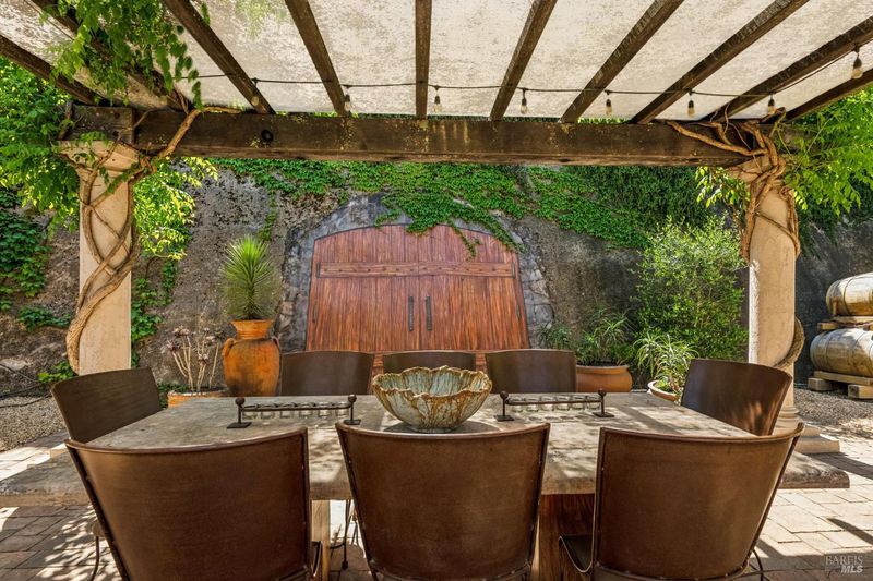 Perfectly located on coveted Lovall Valley, this property is situated on Sonoma's Eastside and showcases exceptional views of nearby vineyards and surrounding hillsides. A gated entry leads past stone walls and native landscaping to a hobby vineyard with approximately 300 mature Petit Verdot vines. Upon entering the residence, you are greeted by a spacious living room with cathedral ceilings and expansive windows designed to capture the dramatic landscape and natural light throughout the day. Gleaming fir floors and a gas fireplace create a warm, inviting atmosphere. The kitchen is equipped with a Wolf range, Sub-Zero refrigerator, generous storage, and connects seamlessly to the dining area, which features coffered ceilings and French doors that open to the grounds. The outdoor areas are thoughtfully designed and include a pergola draped in trumpet vines, creating a natural extension of the living space and a perfect setting for entertaining friends and family. The single-level layout offers three bedrooms and two and one-half bathrooms, all with consistent wood flooring. The expansive primary bedroom features high ceilings and French doors that lead to a nearby deck. Enjoy all that Sonoma Valley has to offer in this inviting Wine Country retreat, centered around views, indoor-outdoor living, and a strong connection to Sonoma's natural beauty.
