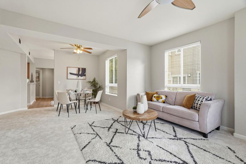 Nestled in the welcoming Communications Hill neighborhood, this charming end-unit home at 599 Marble Arch Ave invites you in with warmth and ease. New carpeting downstairs and sleek laminate floors in the dining area add a cozy touch, with wood floors on the stairs and upstairs. Three generous walk-in closets provide plenty of space. The light-filled living room with soaring vaulted ceilings and a fireplace feels open and relaxing, perfect for unwinding. Retreat to the primary suite with its high ceilings, fireplace, deep soaking tub, and abundant storage. Amenities like copper plumbing, kitchen gas, double-pane windows, and AC ensure comfort year-round. A two-car garage with extra storage keeps things organized. Stroll community trails, dip in the pool, or relax in the spaall steps from shops, dining, and easy commutes. Ready for you to make it home.
