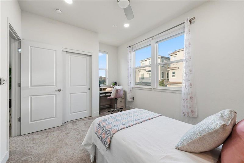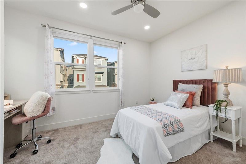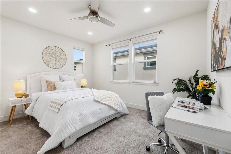 Welcome to this beautifully upgraded 4-bedroom, 3-bath, corner home in the highly sought-after Irongate community. This home features a full bedroom and bathroom on the first floor, ideal for guests, multi-generational living, or a home office. The open, light-filled layout and corner positioning bring in abundant natural sunlight. Upstairs, three spacious bedrooms are connected by a wide passageway, delivering a grand, airy, and elegant living experience for residents who value space and flow. Enjoy a private backyard perfect for relaxing or entertaining. Richly upgraded with premium flooring, custom cabinets and racks, a water softener, and more. Leased solar helps keep energy costs low. Unbeatable location, walkable to Target and Starbucks, minutes to I-580, shopping, dining, and daily conveniences. Residents love access to walkable top-rated schools, Cottonwood Creek K-8, & Emerald High. Community members enjoy gas cooking, ideal for authentic flavors and faster cooking, requiring high heat and precise flame control. Residents enjoy parks, trails, no Mello-Roos, and lower property taxes, making this home both beautiful and a smart long-term investment. A rare opportunity to own a sun-filled, luxury corner home in one of Dublin’s most desirable neighborhoods. Don’t miss out!