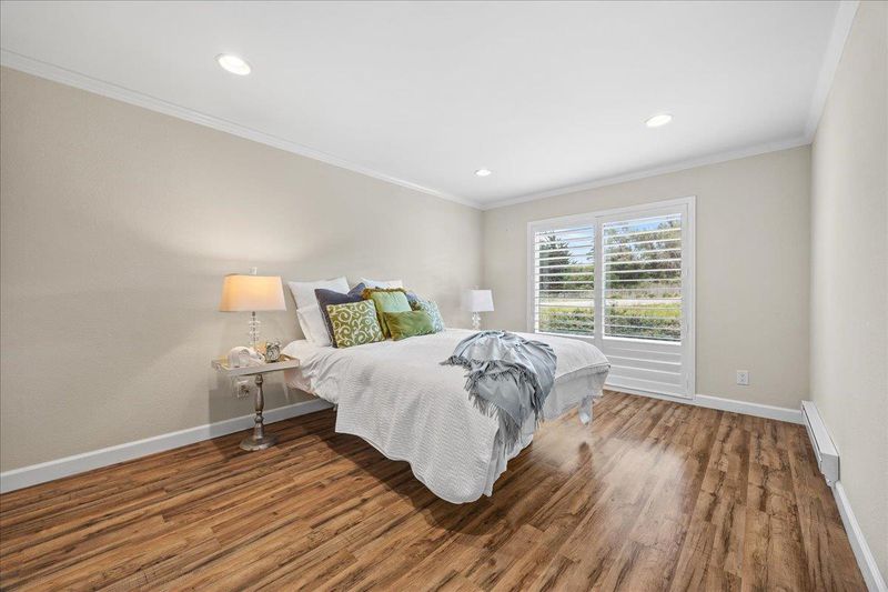 Remodeled 2 bedrooms with 2 bathrooms. Kitchen has newer appliances, white cabinets and solid material countertops, designer tiled back splash. All flooring is laminate that looks like hardwood. Wood burning fireplace, double paned windows, laundry in unit with washer and dryer, coat closet, pantry and extra storage located just down the hallway. New balcony. Primary suite has a large walk in closet, shower stall with white porcelain tile, newer white double sink vanity with designer back splash. The hallway bath has a shower over a tub with newer single sink vanity. Solid wood plantation shutters in both bedrooms. Great location within walking distance to Commodore Park across the street, restaurants, shops, grocery stores, BART within walking distance. Great commute pattern with easy access to hwy 101, 380 and 280. Airport close by and minutes to San Francisco. Centrally located on the Peninsula. This great condo is move in ready.