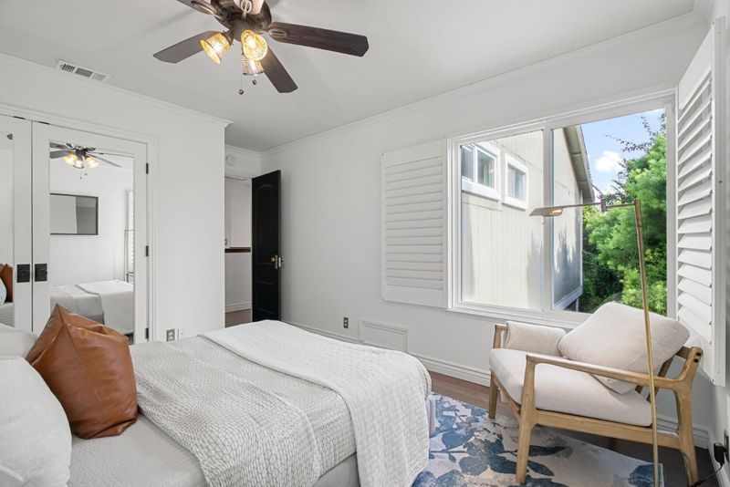 Step Into your LuxuryDream Home! Instant Wow Factor: Double-door entry sweeps you into a grand foyer w/expansive layout & soaring vaulted ceilings accented by gorgeous sustainable bamboo flrs, elegant plantation shutters, premium solid-core doors, solid brass hardware, exquisite LED designer lighting, crown molding & baseboards gracing every room! Gourmet Kitchen: grand island, granite counters, cstm cabinets, induction stove, farmhouse sink, dual ovens. Host in style! Inviting living Rm w/gas fireplace & Dining rm flow to luxurious travertine patio & garden framed by fruit trees, ultimate privacy! Massive spa-like master ensuite w/double-door entry, his/hers closets, mirrored French Doors & Vaulted Ceilings. Updated Master Ba w/dual sinks & new glass enclosed shwr. 2nd Ba w/Restoration Hardware elements, stunning marble flrs & 2 spacious bdrms down the hall! New HVAC, dual pane windows for quiet living, full size w/d in mud rm, 2+ car garage, Tesla Solar for massive energy savings eco-friendly & wallet-winning! Prime Location. Easy commutes, Bike the scenic Los Gatos Creek Trail to vibrant Dwntwn Campbell or Los Gatos. Quick drive to the Row, Valley Fair, top shops, Valley Med & exciting new developments. Elevate your lifestyle! Tour TODAY and claim your slice of paradise!