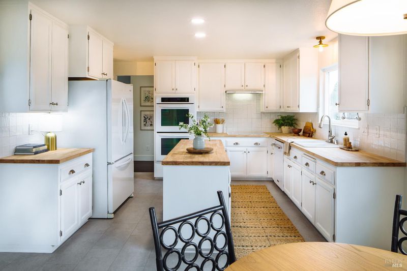 - Breakfast Area, Butcher Block Counters, Island, Pantry Cabinet