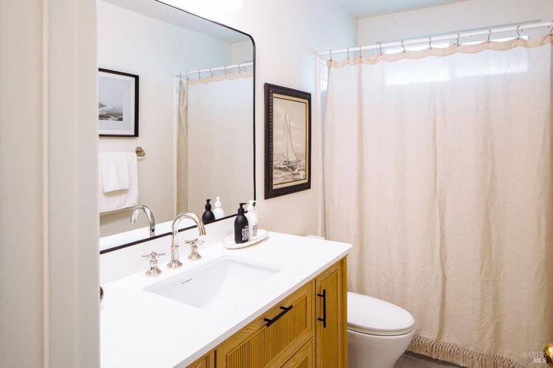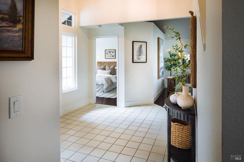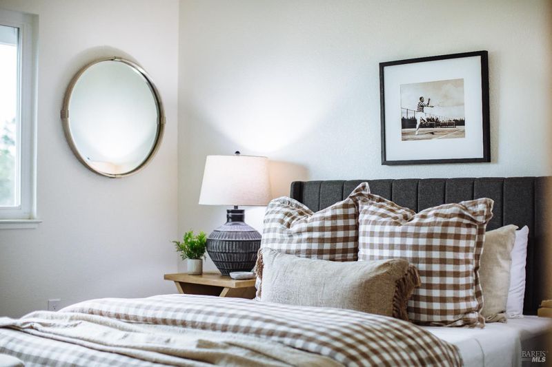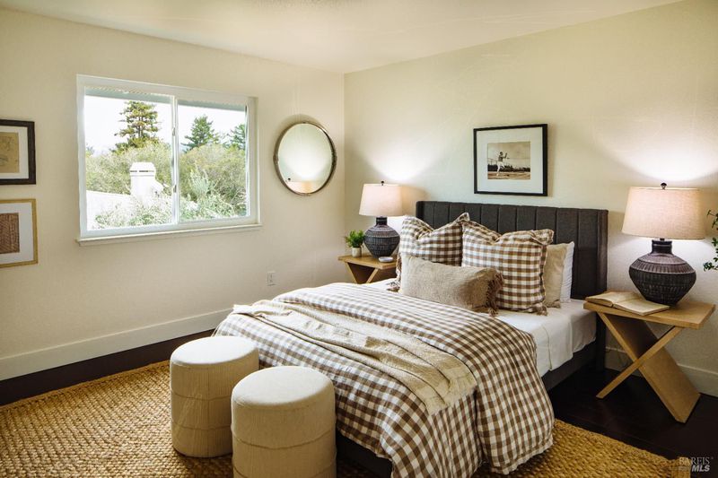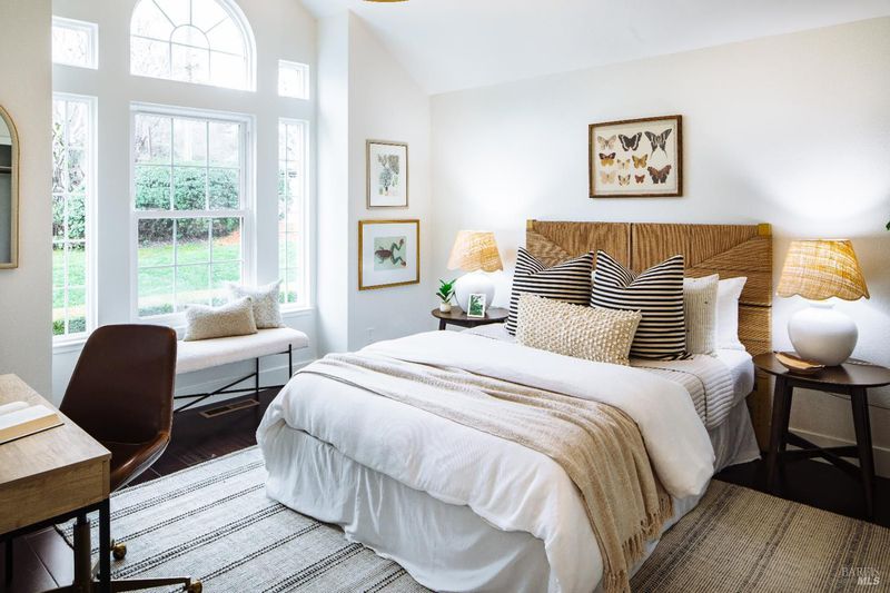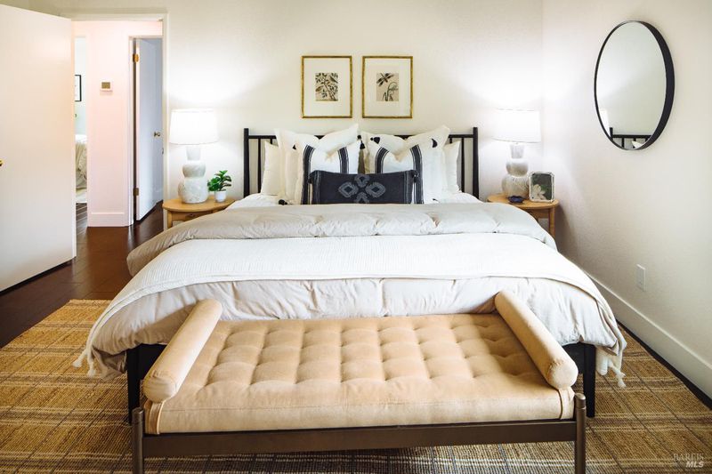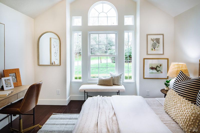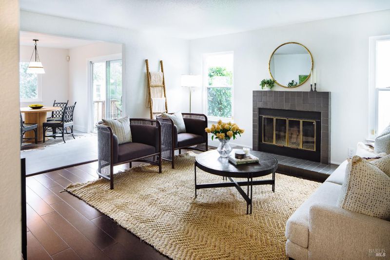 Welcome to this beautifully updated residence in the highly sought-after Cherry Valley neighborhood of West Petaluma. Offering 4 bedrooms and 3 bathrooms across 2,464 square feet, this spacious home seamlessly blends timeless character with elevated modern updates. The lower level is designed for both comfortable living and effortless entertaining, featuring a formal living room and a separate family room - each with its own fireplace - along with a dedicated dining room for gatherings large or small. The updated kitchen showcases butcher block counters, an inviting eat-in area, and direct access to the deck and yard, creating a natural flow for indoor-outdoor living. A bedroom and full bath on this level provide flexibility for guests, multigenerational living, or a private home office. New lighting, flooring, vanities, interior and exterior paint as well as newer windows and dual zone HVAC system enhance both style and efficiency. Upstairs, three additional bedrooms and two bathrooms include a serene primary suite with vaulted ceilings, soaking tub, separate shower, and a dual sink vanity. From this level, enjoy peaceful views of the surrounding hills. Set on a generous 7,800 square foot lot, the grounds are rich with established landscaping. A magnificent mature magnolia tree serves as the centerpiece, complemented by roses, an olive tree, bird of paradise, camellias, and a variety of plantings poised for vibrant spring blooms. Ideally positioned kitty-corner to Cherry Valley School and directly across from Cherry Valley Park, this exceptional property offers a rare opportunity to enjoy space, beauty, and convenience in one of Petaluma's most desirable neighborhoods.