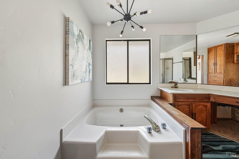 - Double Sinks, Shower Stall(s), Soaking Tub