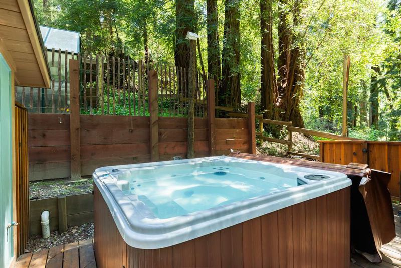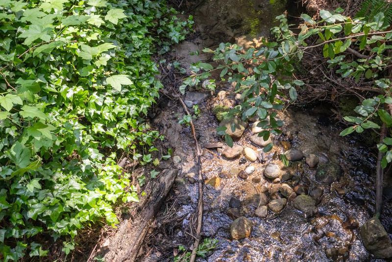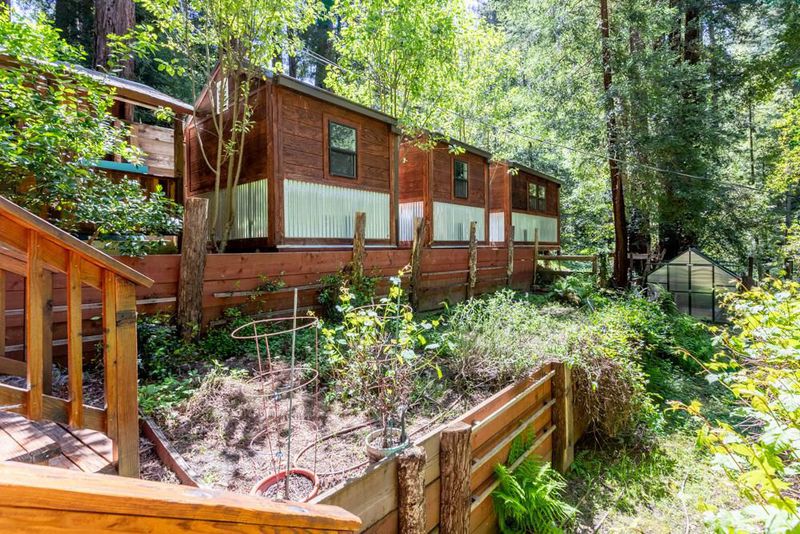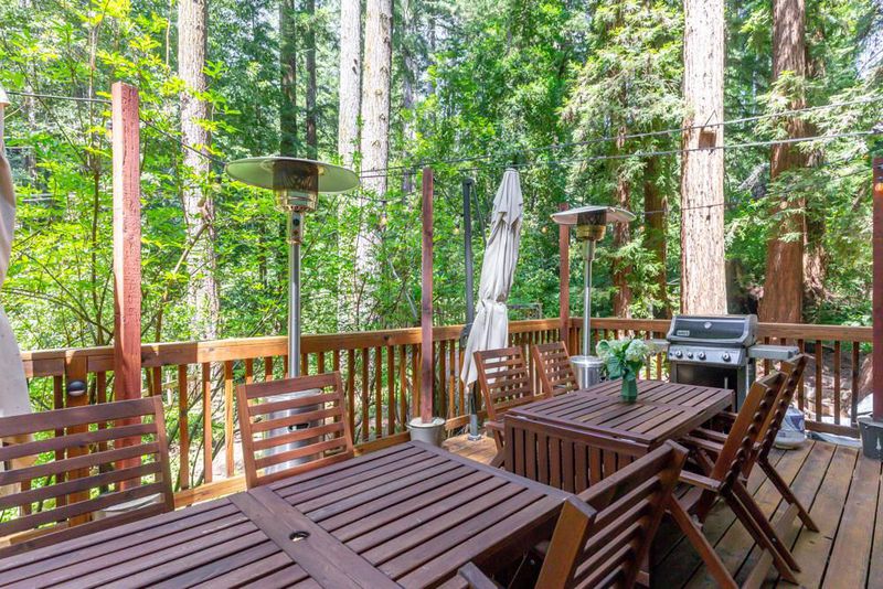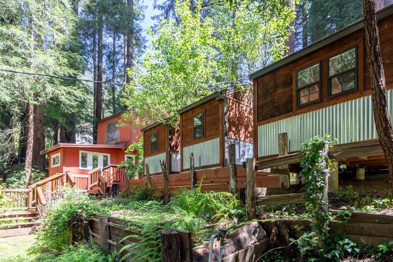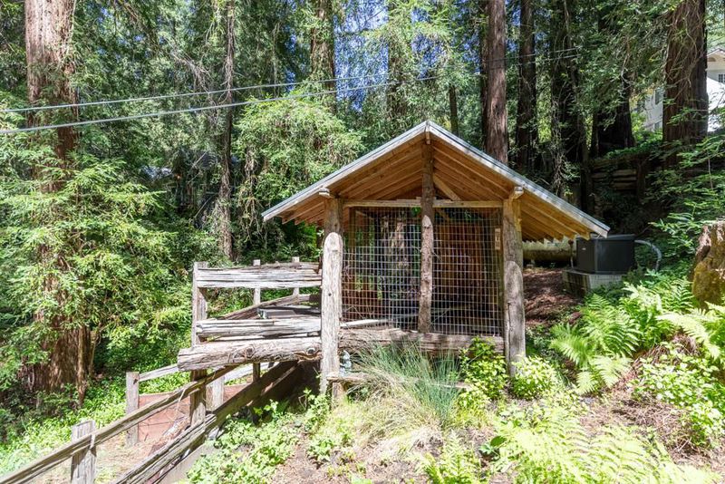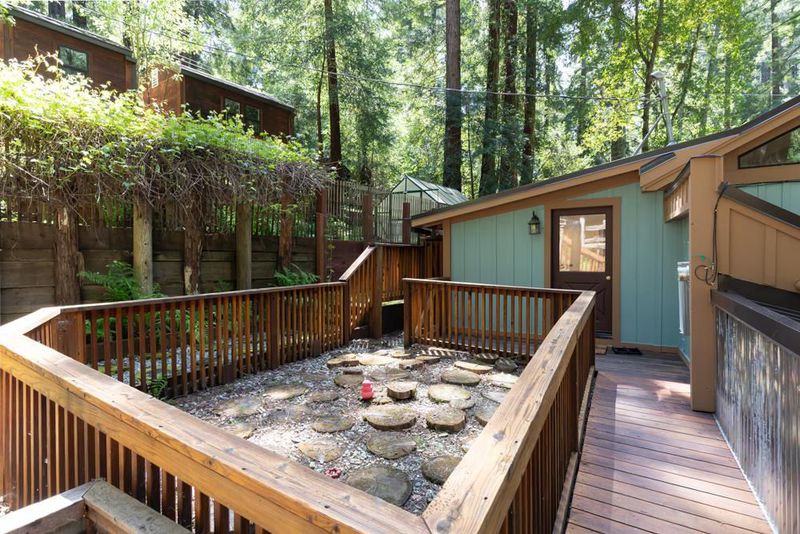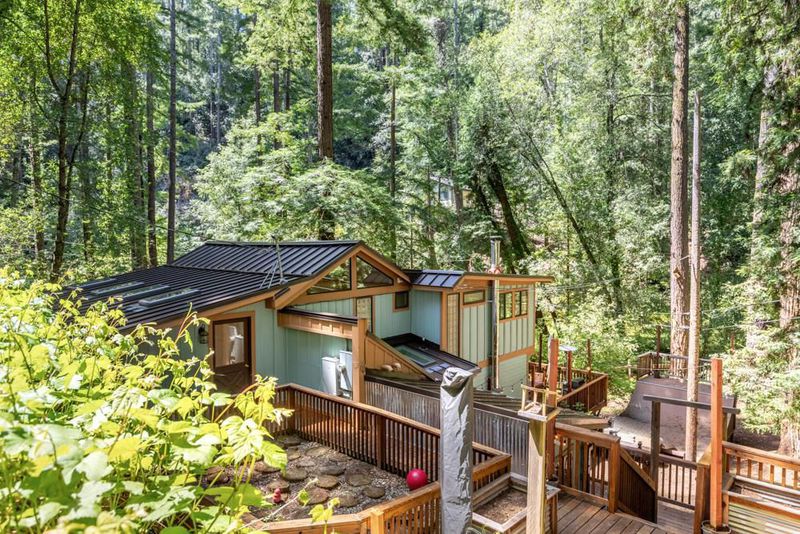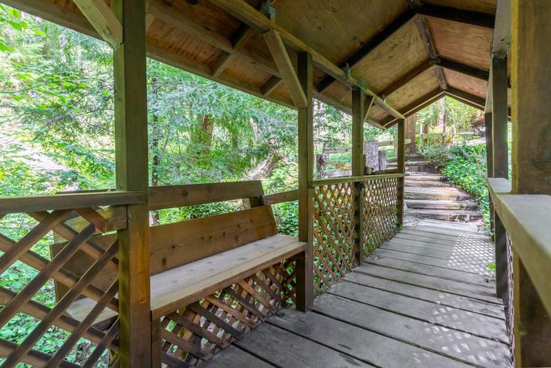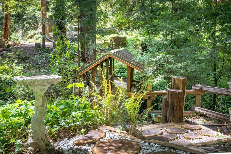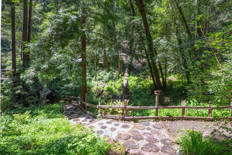 This is an enchanted, must-see property. From Highway 9, pass downtown Boulder Creek.Turn right on Bear Creek. In 1.5 mi. left on Hiawatha Rd. Park at the end of the road and walk across the covered bridge.Parking for larger vehicles on Orman Rd.