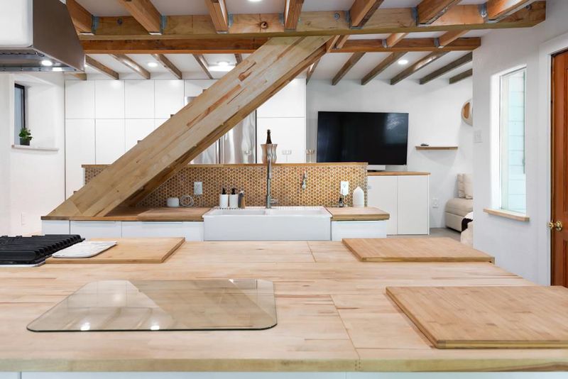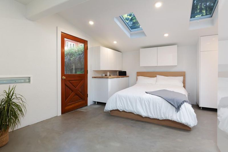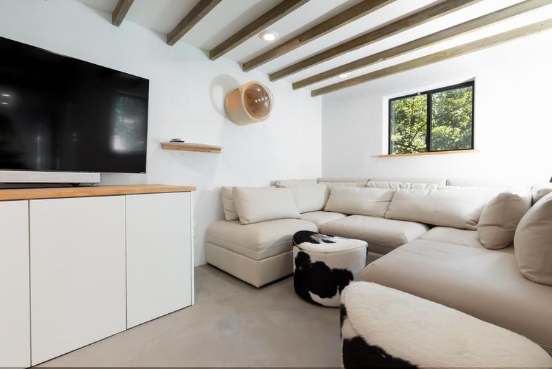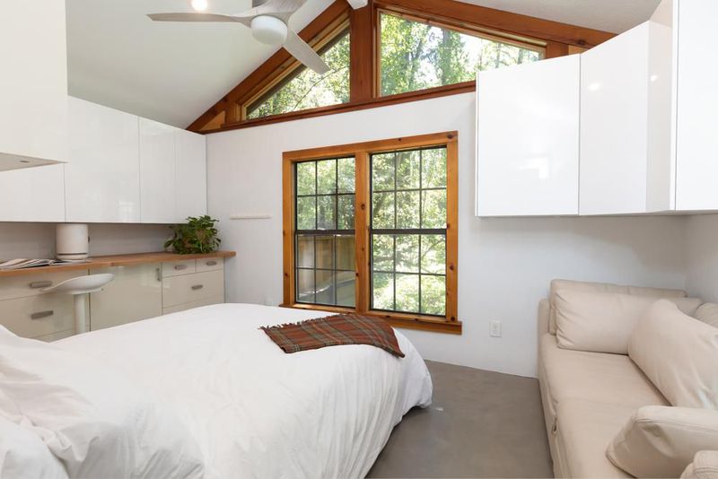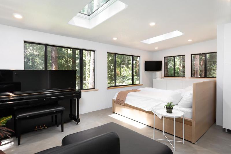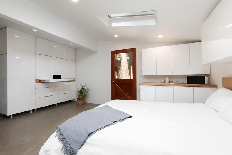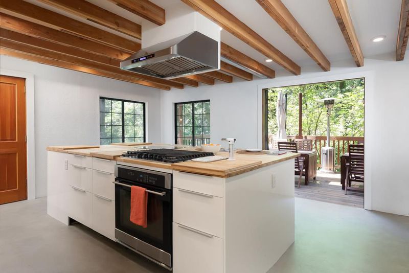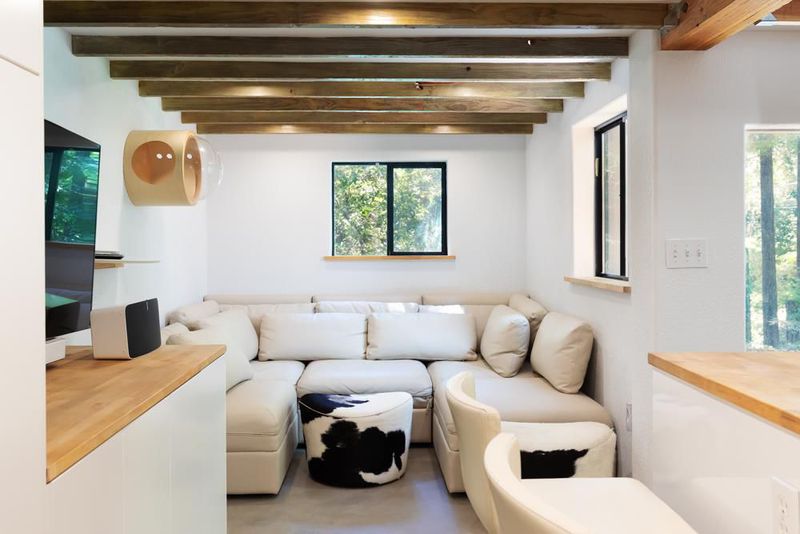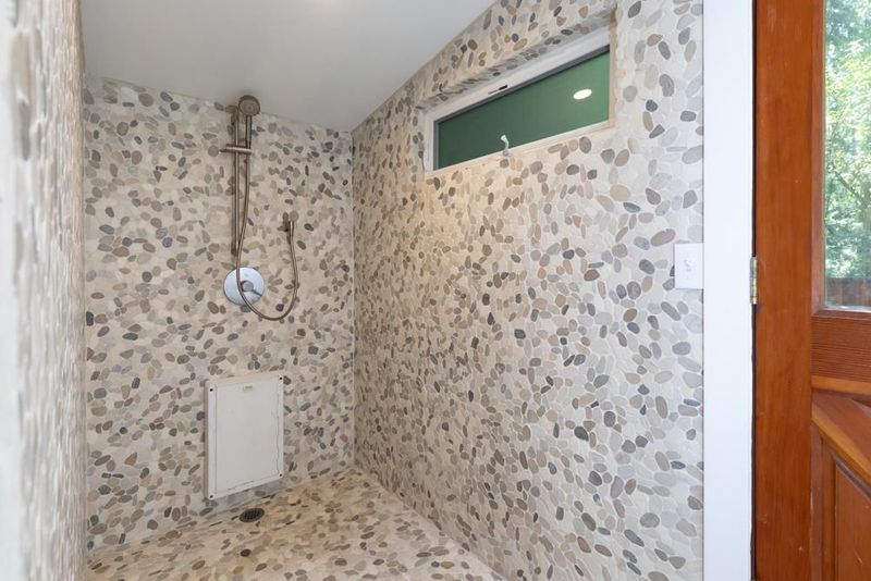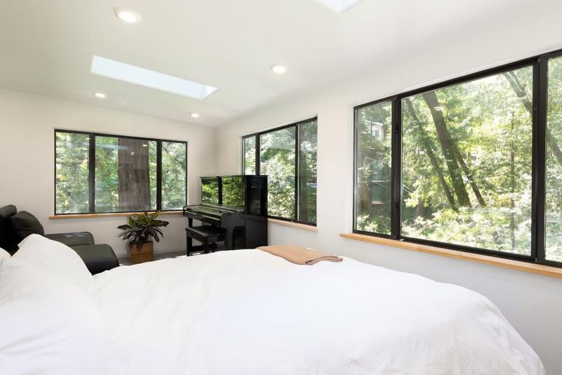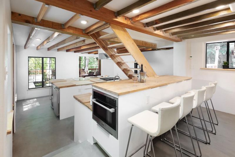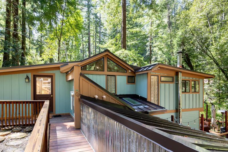 414 Hiawatha Road is an enchanting forest retreat where natural beauty and thoughtful design create a sense of calm and quiet magic. Crossing the charming covered bridge, you're welcomed by the gentle sound of a babbling brook, an arrival that feels like stepping into a storybook. Inside, the home has been meticulously redesigned into a contemporary sanctuary with a warm Scandinavian aesthetic. Skylights invite soft forest light to pour in, creating a bright connection to the surrounding landscape. The kitchen blends style and function with a beamed ceiling, butcher block countertops, and custom built-ins, including a beverage fridge, nugget ice machine, and convection microwave. A cozy wood stove anchors the space, opening to a spacious deck with serene forest views and a hot tub for soaking under the trees. Upstairs are three bedrooms with sleek built-ins and beautifully designed baths, including a half bath with a shower and access to the dog run. Radiant-heated concrete floors, multiple view decks, a detached building, storage structures, an EV charger, and RV/boat parking complete the offering. Tne existing low-rate mortgage may be assumable by a qualified Veteran.