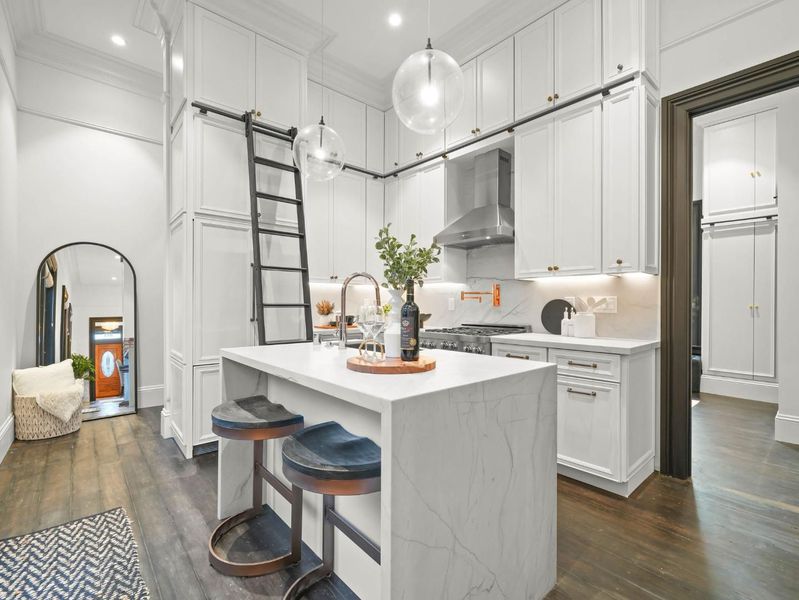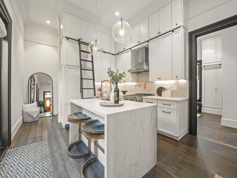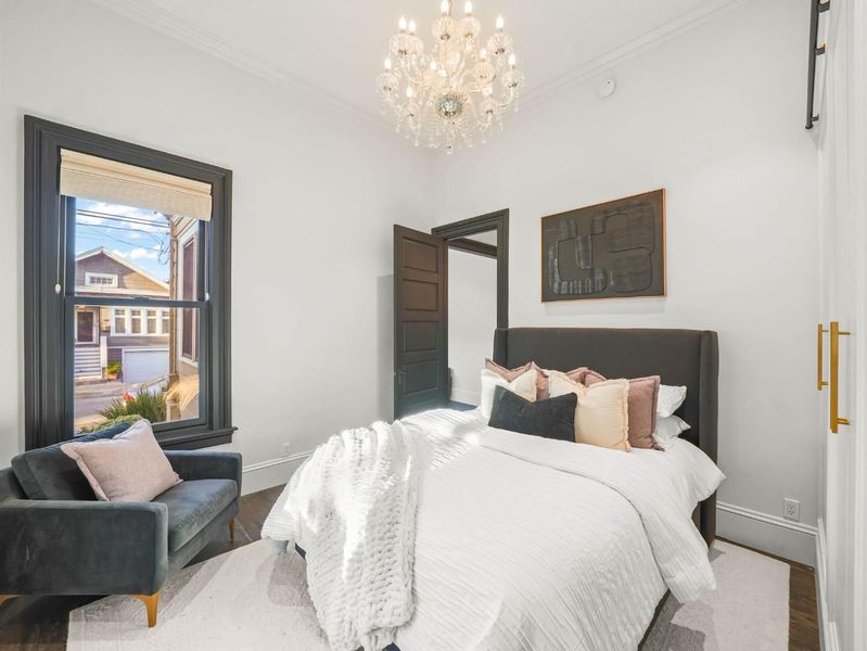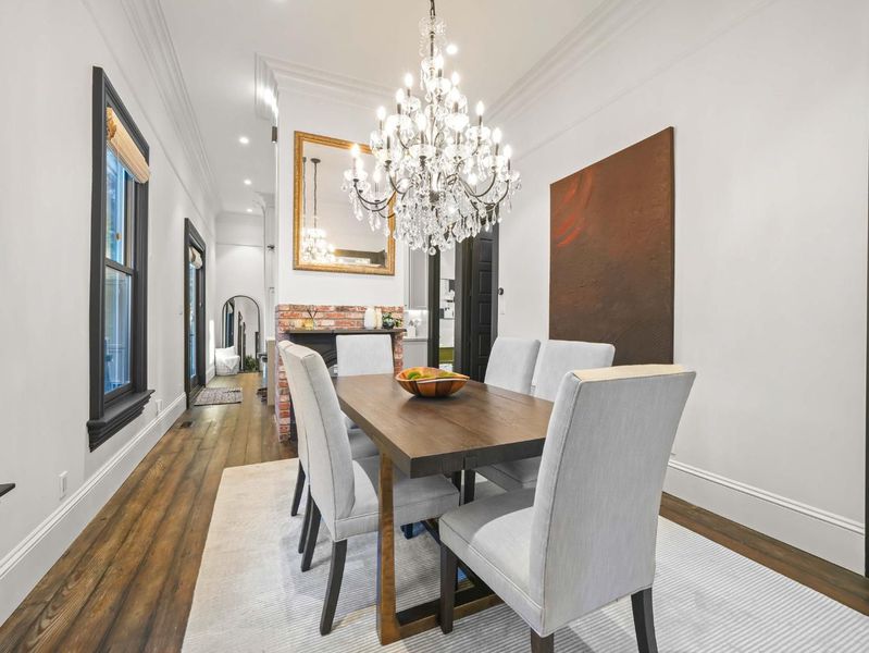 Stunningly restored 1900's Victorian in the coveted Vendome neighborhood, seamlessly blending historic charm with modern luxury. Prime location just steps from Japantown & Downtown San Jose. This beautifully updated home features soaring 12' ceilings, original hardwood floors, all-new Renewal by Andersen windows, custom 8' doors, designer lighting, detailed trim work & a striking double-sided gas fireplace. The chef's kitchen boasts 12' custom Omega cabinetry with library ladder, stainless steel appliances, hammered copper sink, Waterworks fixtures & leathered quartzite countertops with a waterfall island. The 2.5 elegantly remodeled baths include unique fixtures throughout, with a showpiece primary bath offering a clawfoot tub, brass hardware & herringbone marble flooring. A fully finished in-law basement unit with private entry (permits unknown) includes 2 bedrooms, kitchen, full bath, living area, in-unit laundry & separate heating/cooling ideal for guests or multi-gen living. Additional basement areas provide ample storage & a second laundry space. Outside, enjoy a private backyard with mature fruit trees & an automated antique fountain. Oversized driveway fits multiple or large vehicles. Major system upgrades include newer plumbing, electrical, two new HVAC units & more!