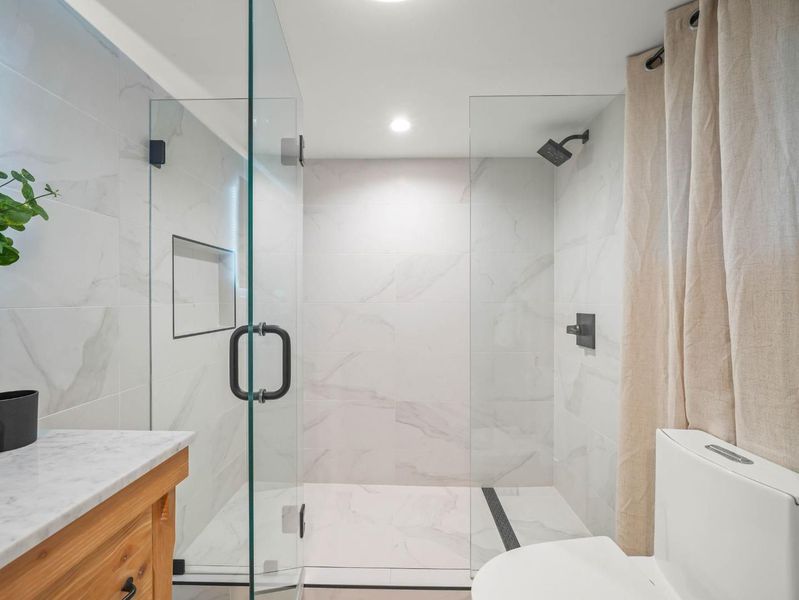 - Stall Shower, Tub, Tub in Primary Bedroom, Updated Bath