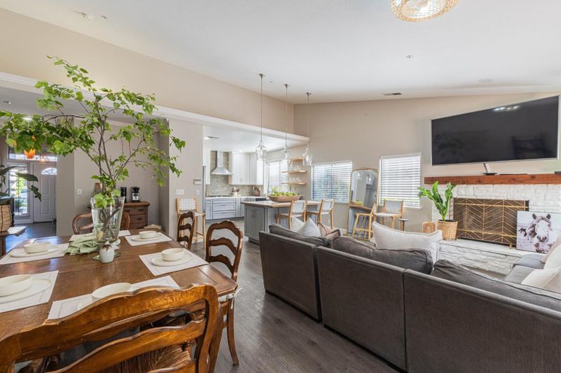 Welcome to 746 Nacional Court, a beautifully updated home located in one of Salinas' most desirable communities, featuring sought-after construction by the Harrod Company. This 3-bed, 2-bath residence offers 1,812 sq.ft. of thoughtfully designed living space on a spacious 6,801 sq.ft. lot. Step inside to discover fresh interior paint, modern wood laminate flooring, and abundant natural light enhanced by upgraded lighting throughout. Just off the entry, a versatile space with custom doors functions as a private office or guest room and easily serves as a potential 4th bedroom. The home opens to a stunning vaulted ceiling and a seamless dining, family, and kitchen combo perfect for entertaining. The remodeled kitchen features custom and spacious cabinetry, quartz countertops, a stylish tiled backsplash, floating shelves, and a butcher-block island with pendant lighting that overlooks the family room. The primary and secondary bedrooms are thoughtfully situated for privacy, and a remodeled hall bath features sleek tile and a quartz countertop. Step outside to an expansive backyard complete with a custom pergola, a large wood-burning fireplace, a concrete hardscape, beautiful trees and a large grassy area ideal for gatherings. A perfect blend of comfort, style, and location.
