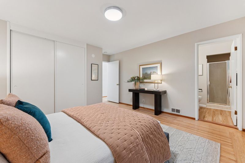 Level in, reimagined Rancher located at the end of a quiet cul-de-sac in desirable Central El Cerrito. This 3BR/2BA home offers comfortable single-level living with a spacious lower-level area and separate storage, ideal for potential in-law or ADU conversion with a private entrance. Features include Solar, refinished hardwood floors, newer dual-pane windows, fresh interior and exterior paint, and updated lighting throughout. The kitchen boasts quartz countertops and backsplash, newer oven, cooktop, and range hood, plus waterproof designer vinyl flooring in the kitchen, baths, and lower level. Two gas fireplaces. Stunning backyard, framed by a semicircular stream, with upper and lower ponds. Two-car attached garage with EV charging station.