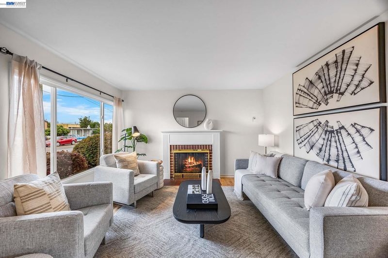 This beloved family home is available for the first time in 70 years. It’s no wonder the owners held onto this gem, w/ its unbeatable location for convenience and walkability. A short stroll brings you to Jefferson Elementary, the post office, favorite restaurants, and essential shopping. Toyon Park - a neighborhood treasure for kids, dogs, and gatherings - is a stone’s throw away, giving you everyday access to open green spaces, a playground, picnic tables, and bocce ball. Plus, this home is a dream for your commute, w/ a bus stop to BART and Oakland just steps away, and a quick hop to 580 and 880. Set on a generous 7,000 sf corner lot, your new home greets you w/ colorful roses in the front yard. Inside, your cozy sanctuary spans 1,569 sf, w/ 3 bedrooms, 1 bathroom, a spacious eat-in kitchen, and a large family room that features a wet bar and space for a work-from-home office. This home is ready to impress from day 1, thanks to its freshly painted interior, refinished hardwood floors, and new laminate floors in the kitchen and 3rd bedroom. Imagine opening a sliding glass door to your big backyard w/ a mature apple tree and ample space for playing and gardening. Important updates like earthquake bracing and dual-pane windows will also give you peace of mind. This is the one!