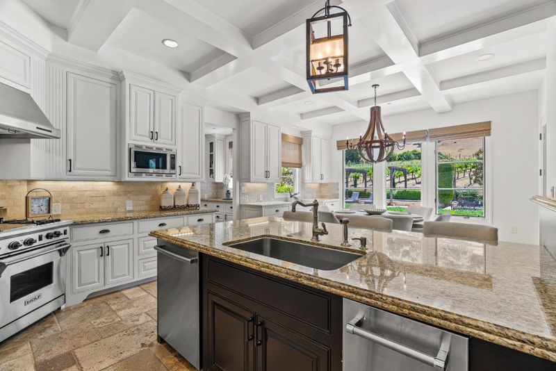 - Countertop - Granite, Freezer, Ice Maker, Island with Sink, Oven - Double, Oven - Gas, Oven Range - Gas, Pantry, Trash Compactor, Wine Refrigerator