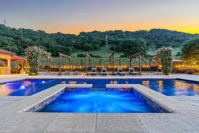 Welcome to CordeValle Estates, this elegant home offers 5 bedrooms, including au-pair quarters, large bonus room, French doors opening to patios, sprawling lawn, vineyard views, & oak-studded foothills. Gourmet kitchen features top-of-the-line appliances, butler's pantry, wine pantry with a Sub Zero wine storage, formal dining room perfect for entertaining. One bedroom/ full bath are conveniently located on the main level. Separate pool cabana offers a pool equipment room, kitchen, full bathroom, gym, craftroom & loggia w/ approx 2100sf of additional space. Private backyard oasis with travertine tile, creating a seamless outdoor living space. Two pondless fountains provide calming sounds. Enjoy the gorgeous pool & spa with stunning views of rolling hills and oak trees. The yard features an oversized gas fire pit for cozy gatherings and a bocce ball court for leisure. This outdoor retreat offers relaxation and entertainment in a luxurious setting. Located minutes from CordeValle Resort golf, spa, and dining, combining luxury living with wine country charm. A rare opportunity to own in one of Silicon Valleys most prestigious gated communities!