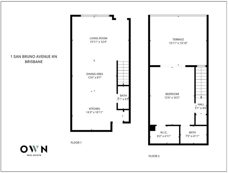 Welcome to 1 San Bruno Ave #N, a top-floor 1BR/1.5BA condo in the heart of Brisbane. This rare two-story unit features soaring ceilings, southwest-facing windows, and a private balcony that fills the home with natural light. The open main level includes a granite kitchen with ample cabinetry, dining area, and living room. Upstairs, the spacious bedroom offers a walk-in closet with custom organizers, ensuite bath with modern vanity, and direct access to a large private terrace with stunning mountain viewsperfect for enjoying peaceful mornings or colorful sunsets. Fresh paint, cleaned carpets, in-unit laundry, and central AC highlight the home, with recent upgrades including a new HVAC system, water heater, refrigerator, and light fixtures. This is one of only four southwest-facing two-story condos in the community, and the only one with central AC. Amenities include gated garage parking with storage, bike room, and a rooftop deck. Located next to Brisbane Community Park and walking distance to downtown shops, restaurants, library, pool, tennis courts, dog park, and nearby Quarry Road and Crocker Park trails, all with easy access to SF, SFO, Hwy 101, and 280.