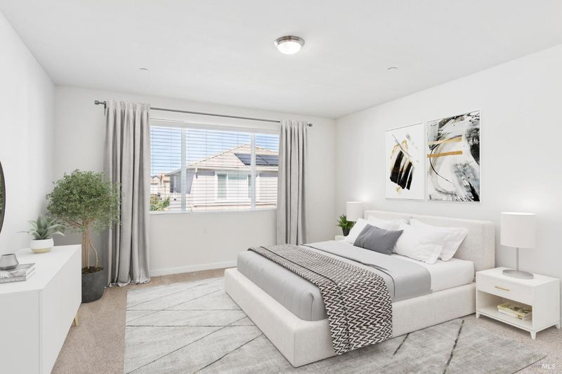 Welcome to your stunning contemporary home located in the desirable Marigold at the Village community. This beautifully designed two-story residence offers 4 bedrooms and 3 full bathrooms, providing ample space and comfort for every member of the family. As you enter, you'll be greeted by an open-plan living area that seamlessly blends the living, dining, and kitchen spaces, perfect for entertaining guests or enjoying family time. The conveniently located bedroom and full bathroom on the main level offers flexibility and ease for guests or family members who prefer single-level living. Upstairs, you'll find a versatile loft area, ideal for a home office, playroom, or additional lounge space. The spacious primary suite serves as a private retreat, complete with a luxurious soaking tub and ample closet space. Outside, the sizable backyard provides the perfect canvas for your outdoor dreams, whether it's gardening, relaxing, or hosting summer barbecues. This home also includes an attached 2-car garage, ensuring plenty of storage and convenience. Built in 2021, this house combines modern amenities with a comfortable living environment, making it an ideal choice for those seeking a blend of style and functionality. Don't miss your chance to make this your home.
